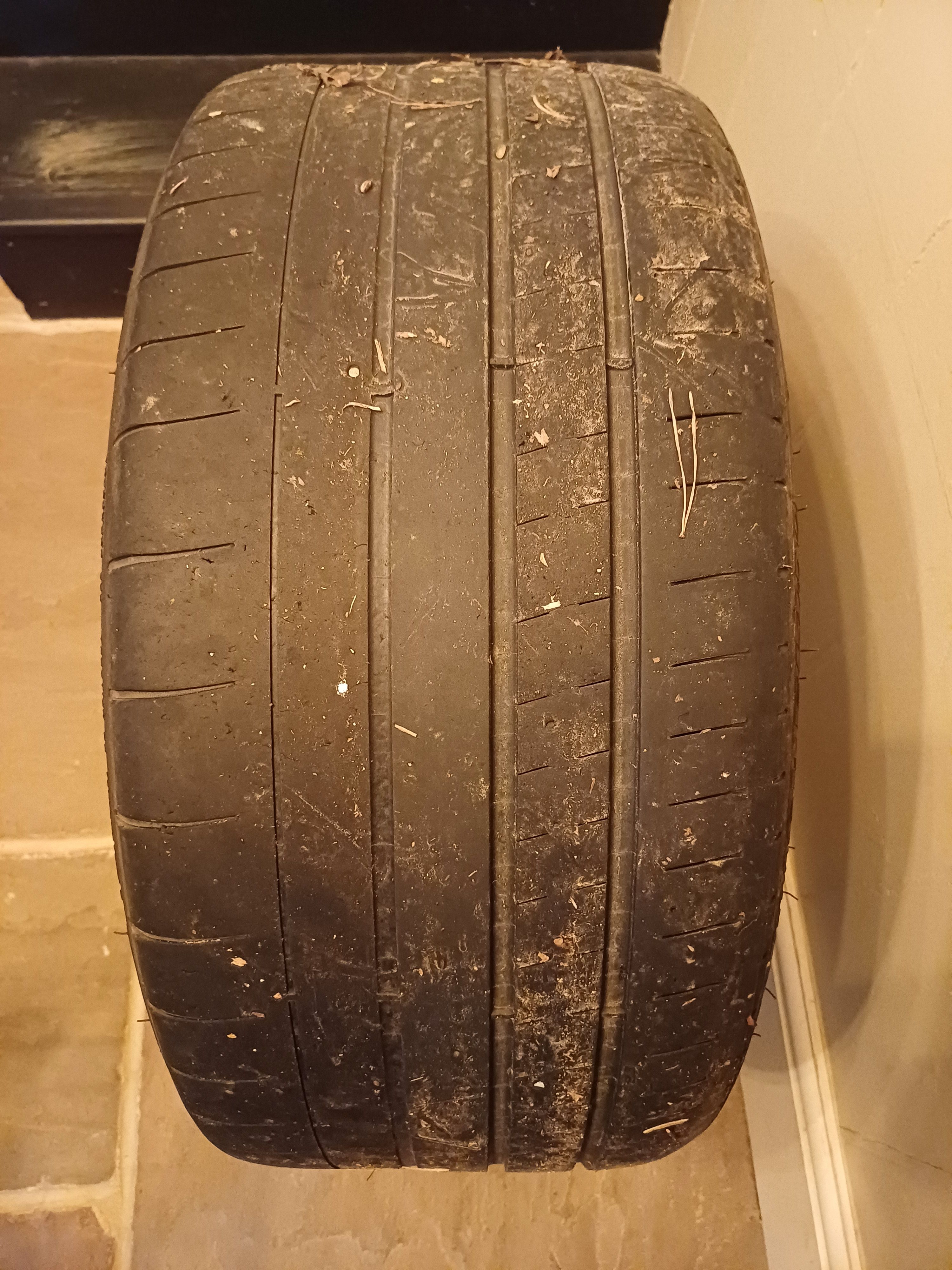Yes, car passed MoT around 6 months ago, the tyres were picked up but the cords weren't showing at all so this all happened in the last 6 months or so. The other front tyre has got around 3mm and it looks like it is following the same pattern (excessive cracking/abrasion on both edges of the tyre) but not sure why it's happening. Tyres date code is 2017 and they were inflated to 32 PSI as per manufacturer. The centre of all 4 tyres seem to be wearing less than the edges. Are the tyres underinflated or what....???? Has to be a wind up, no one, just no one, would want to drive on those tyres.