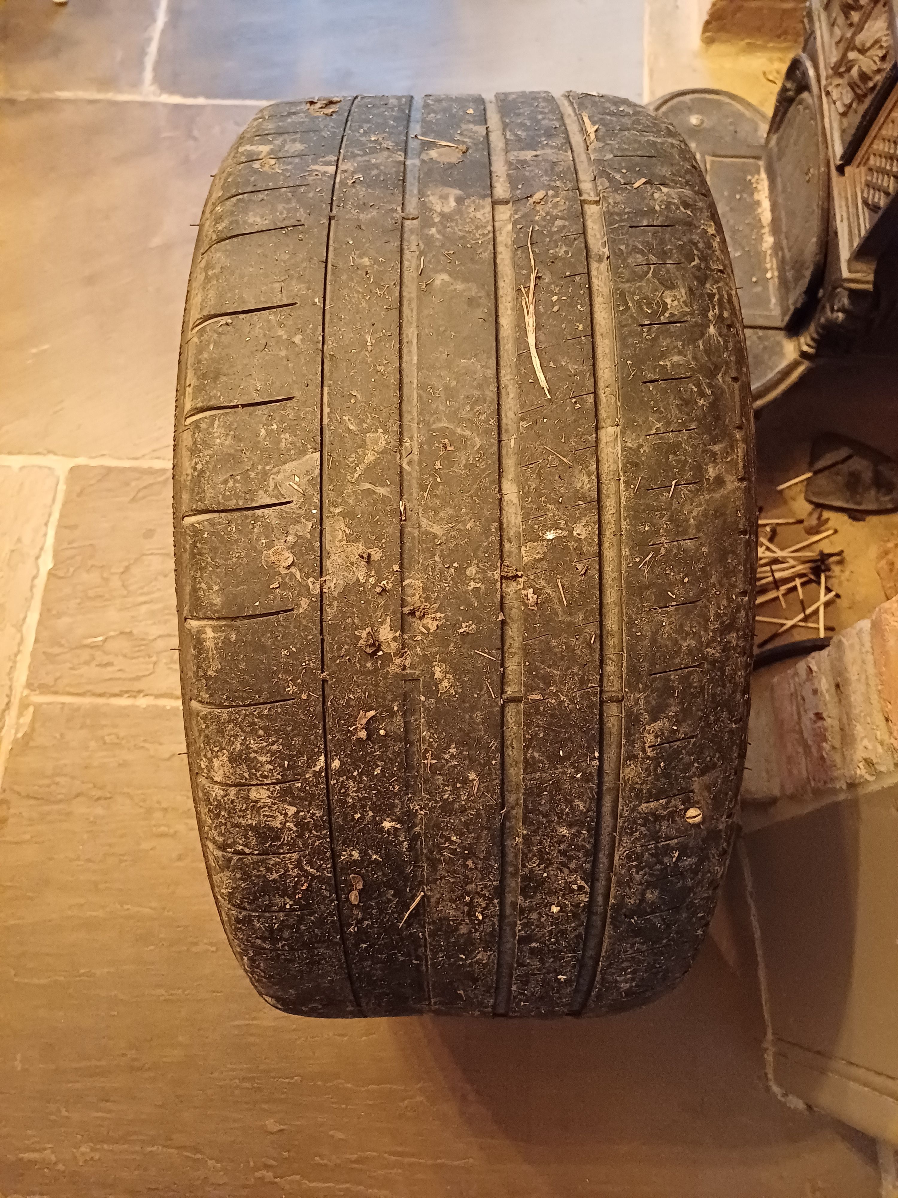 I've got 2 front tyres in the same condition as in picture below - not sure what happened to them. I used to drive 8k/year a few years ago but now only drive 600 miles a year and they still got about 1mm tread left, which would last me another 3-4 years, but not sure if they are still legal or not. They have got the same issue on both offside and near side.