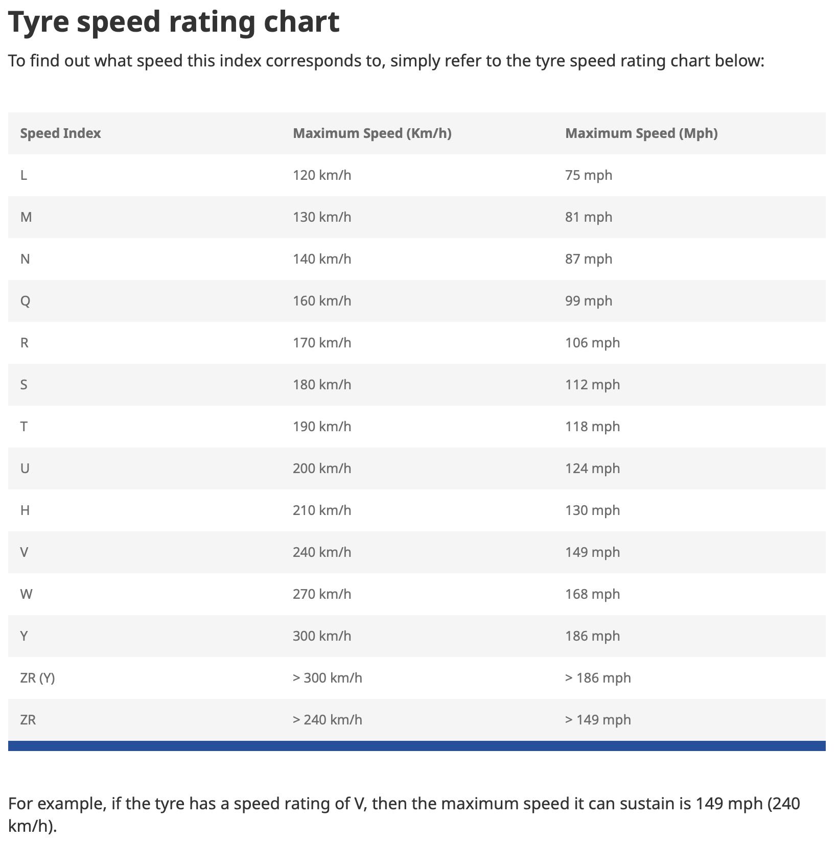 A lower speed rating of H is retained for up to 130mph (you won’t often see ratings lower than H)