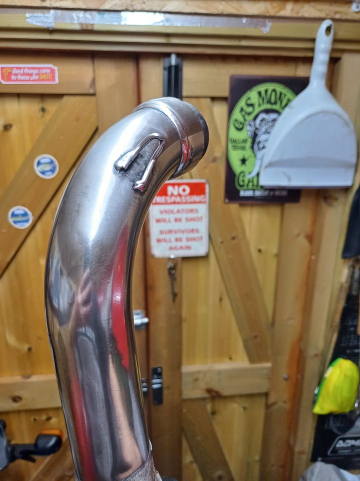 So I have commenced the winter strip down of the bike, the stainless exhaust pipes need polishing back from the dull tarnish they are due to heat..