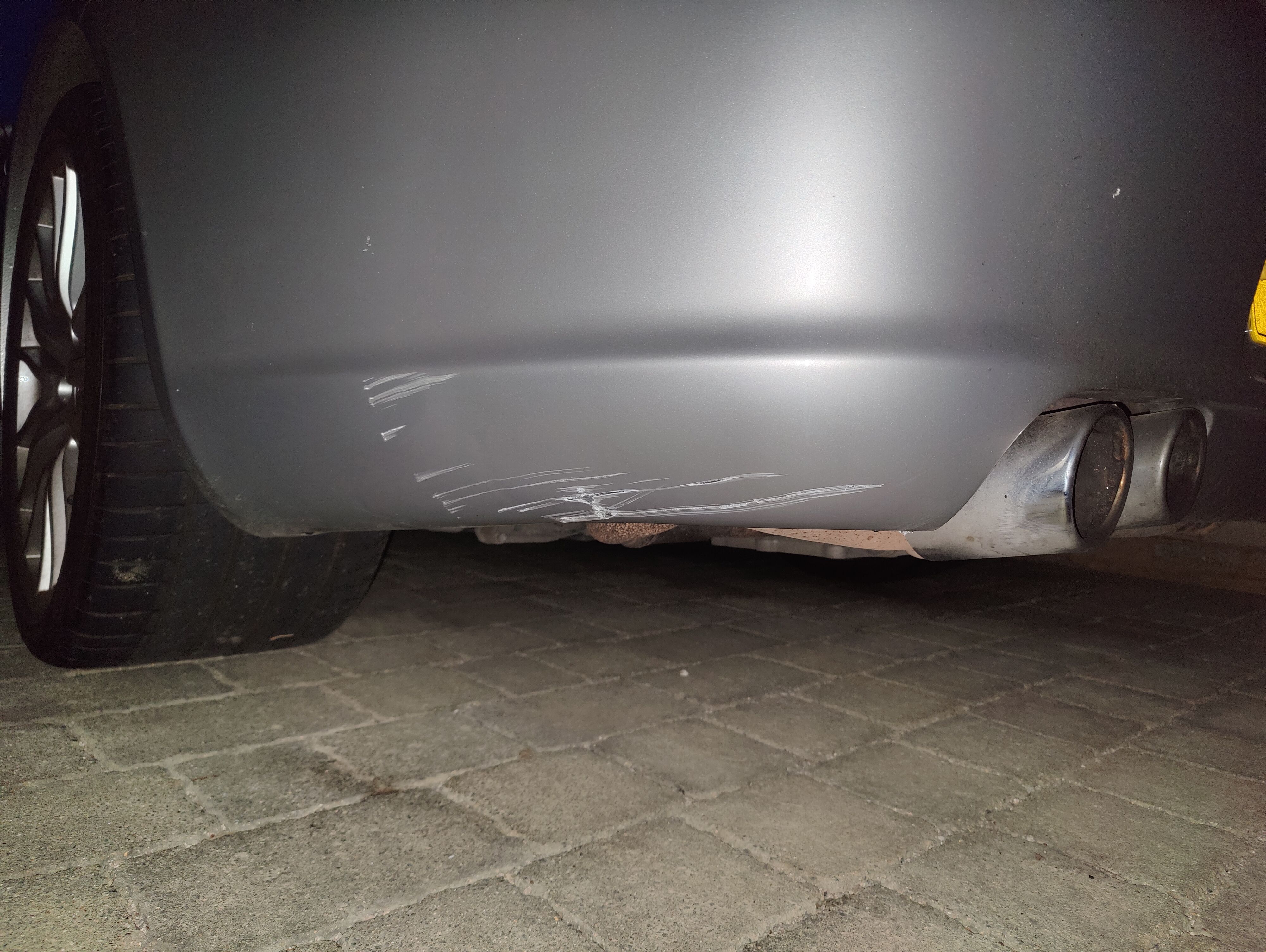 Reversed and scraped on a rock in a local car park (one to stop people cutting the corner, ironically)