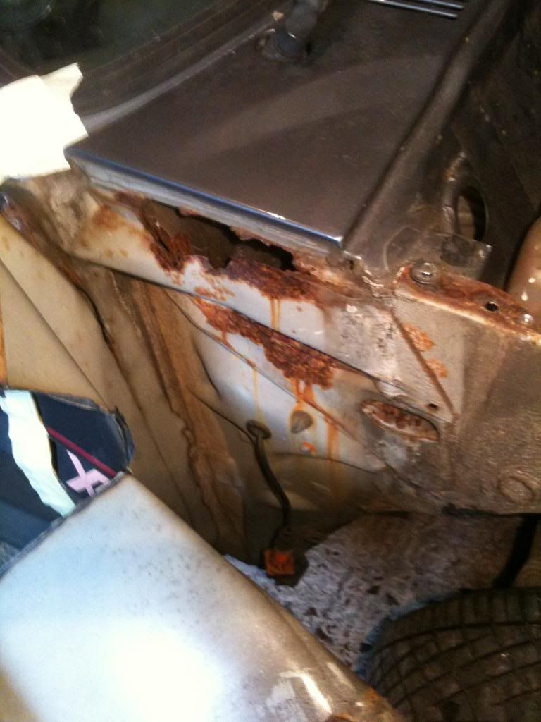 This photo was taken before all the rust was cut out. To the right, you can see the little grommet hole.