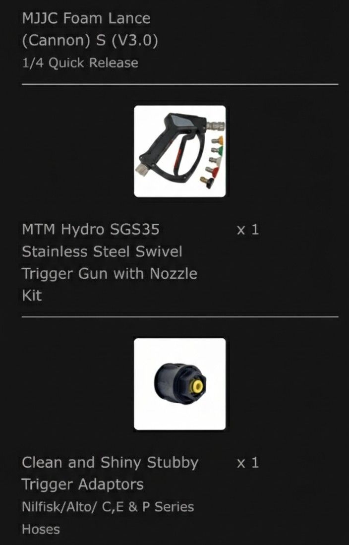 I bought their Deluxe+ stubby gun, plus 3 x premium nozzle set, and their V3 foam cannon.