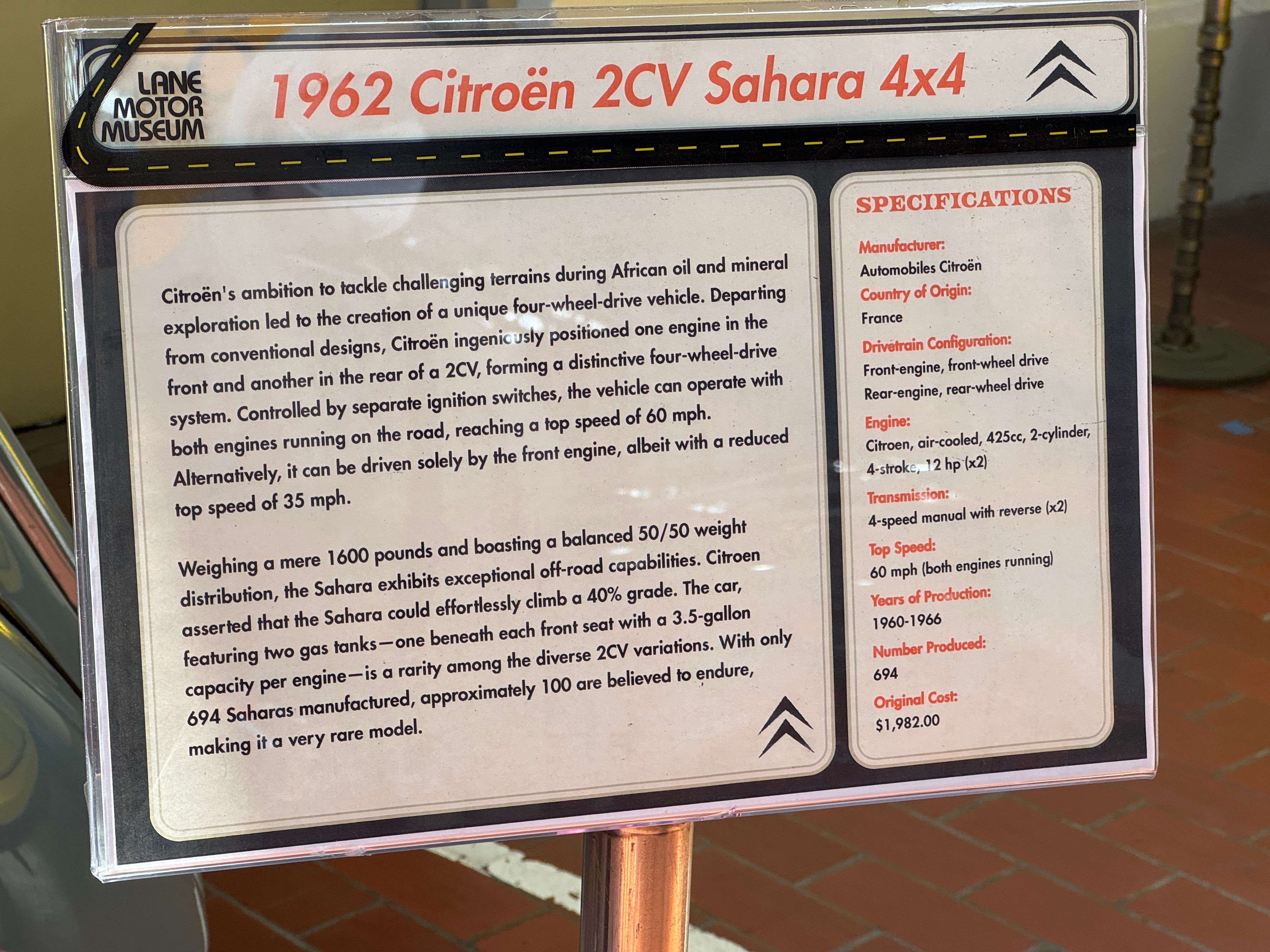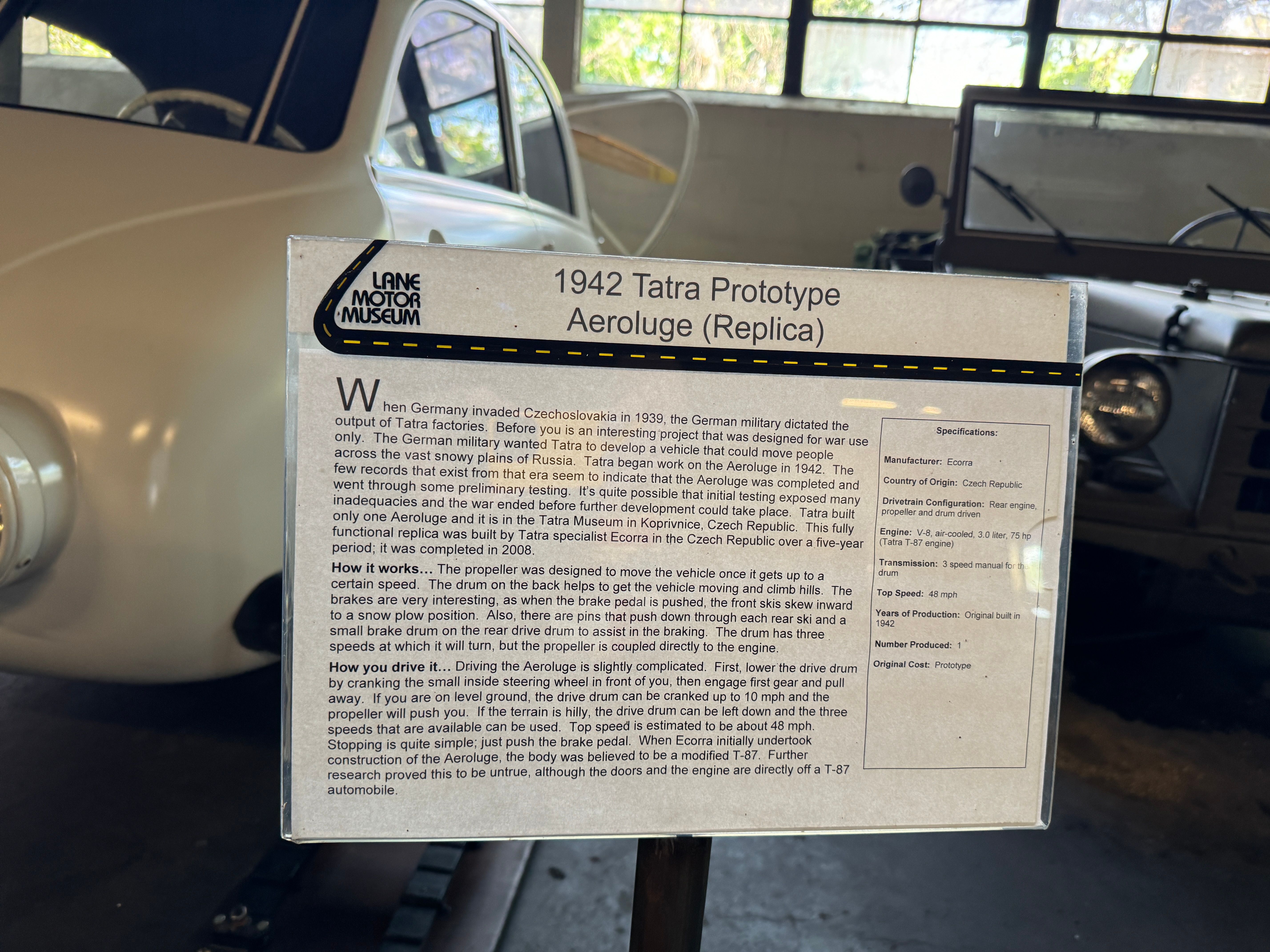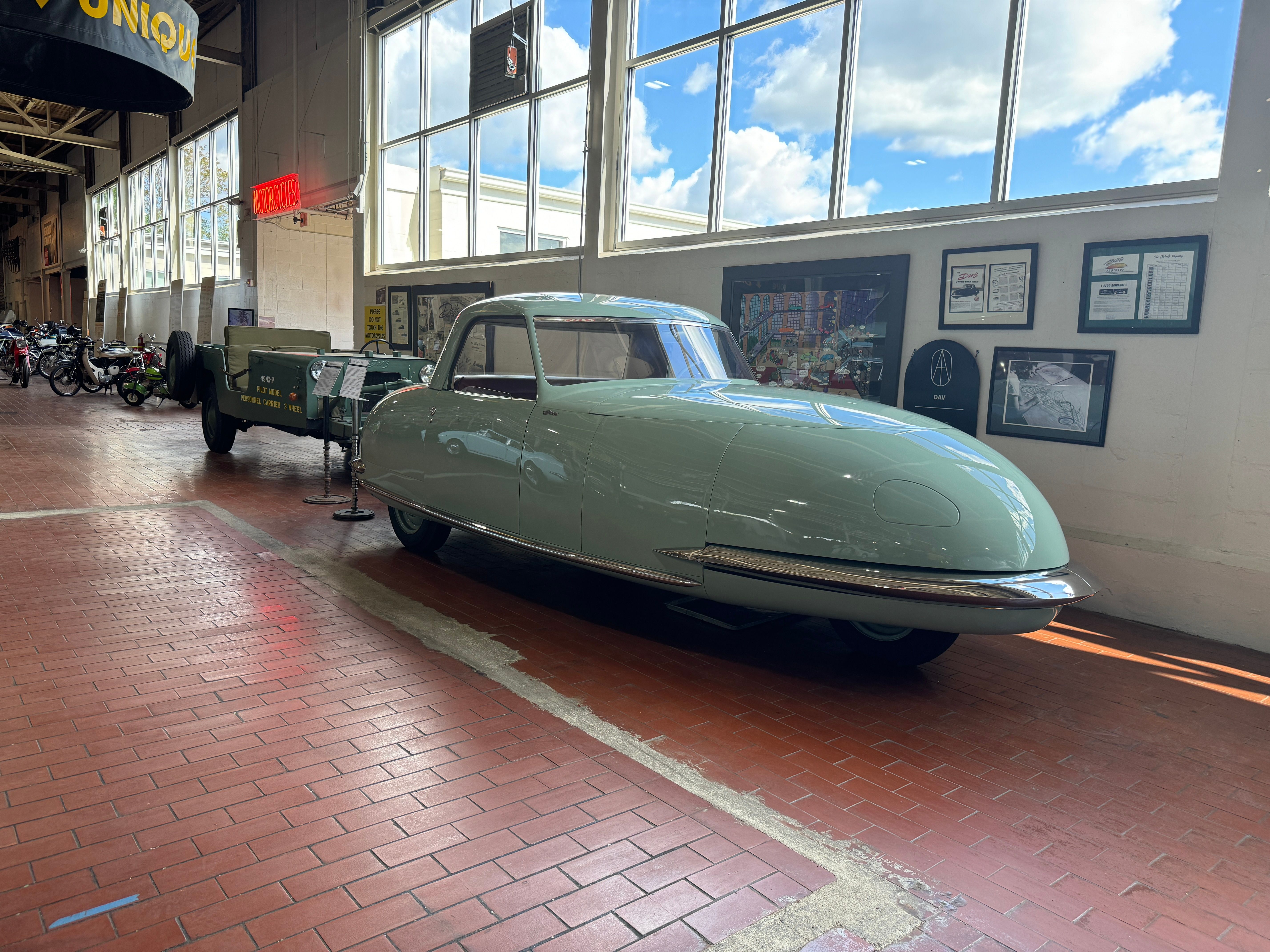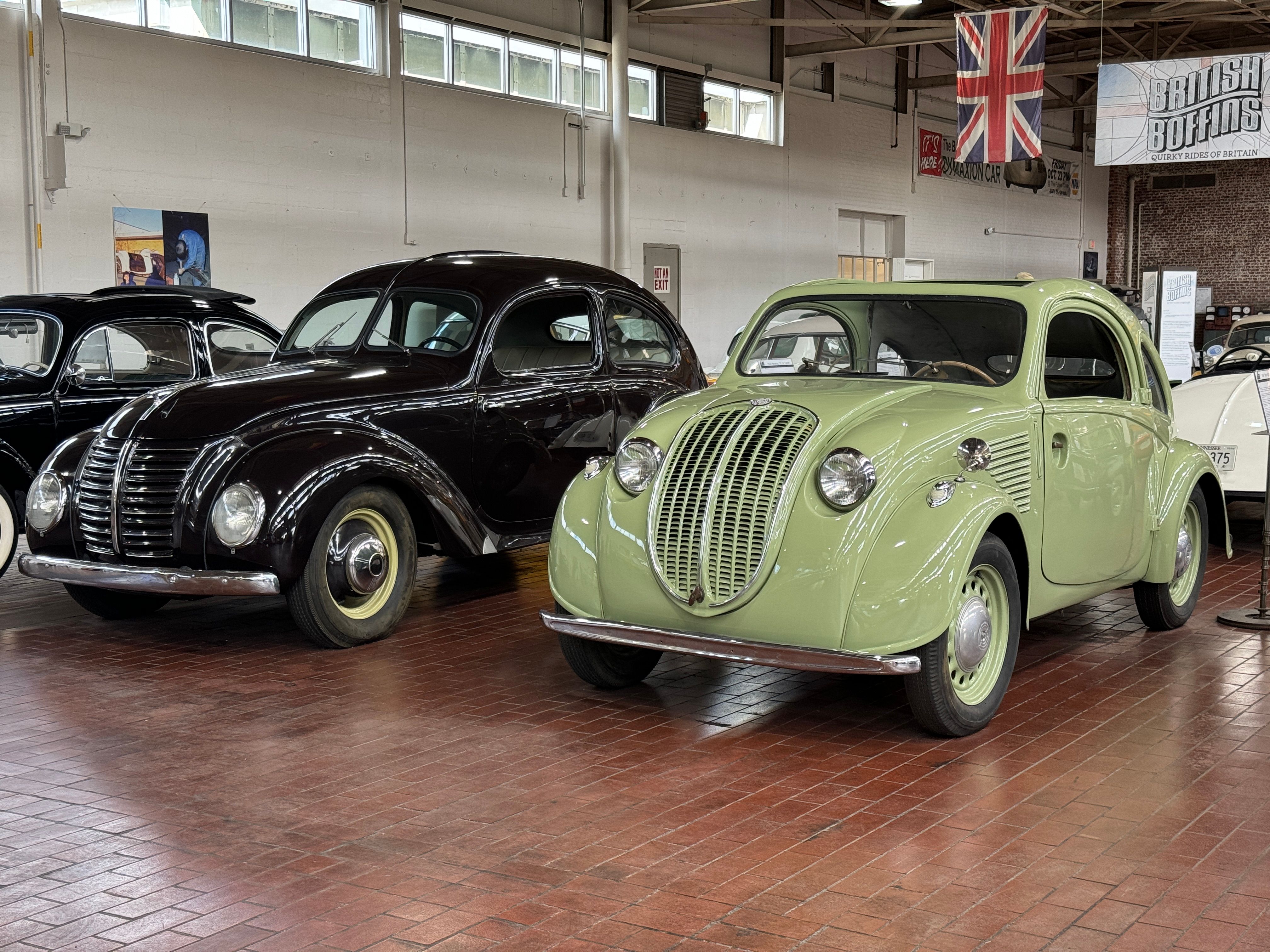 In a huge flat building , a former commercial bakery sits the most eccentric and fascinating automobile collection I have come across. The founder, Jeff Lane has collected some amazing one-offs, obscure models that have long disappeared, and yet includes modern cars that are out of the ordinary. You will not find exotics such as vintage Ferraris or the like in the Lane Museum, but there are rare, often unique vehicles that I had never seen before, Many of them were completely new to me. At any time the Museum exhibits about 150 of its 500 car collection, though it is possible to get a tour of the cars not on exhibit by advance appointment.