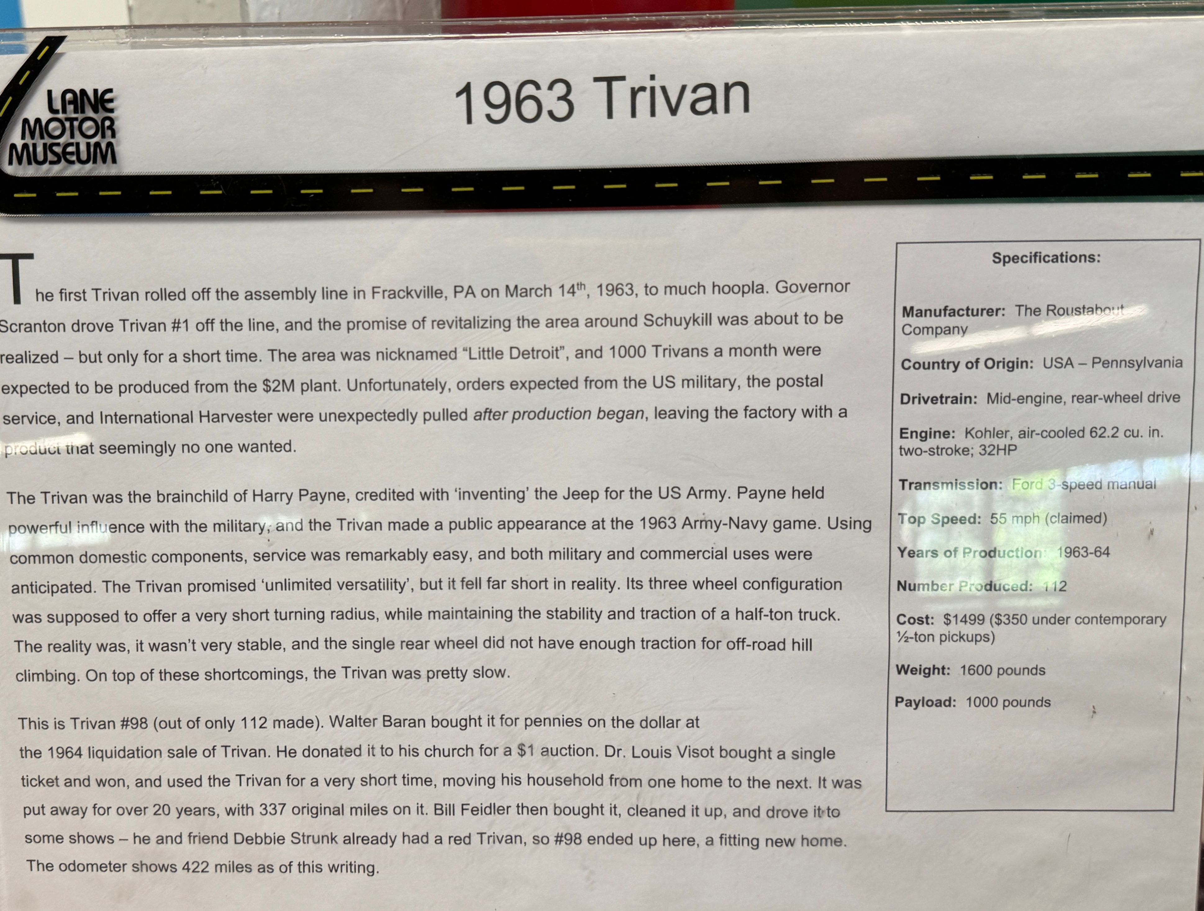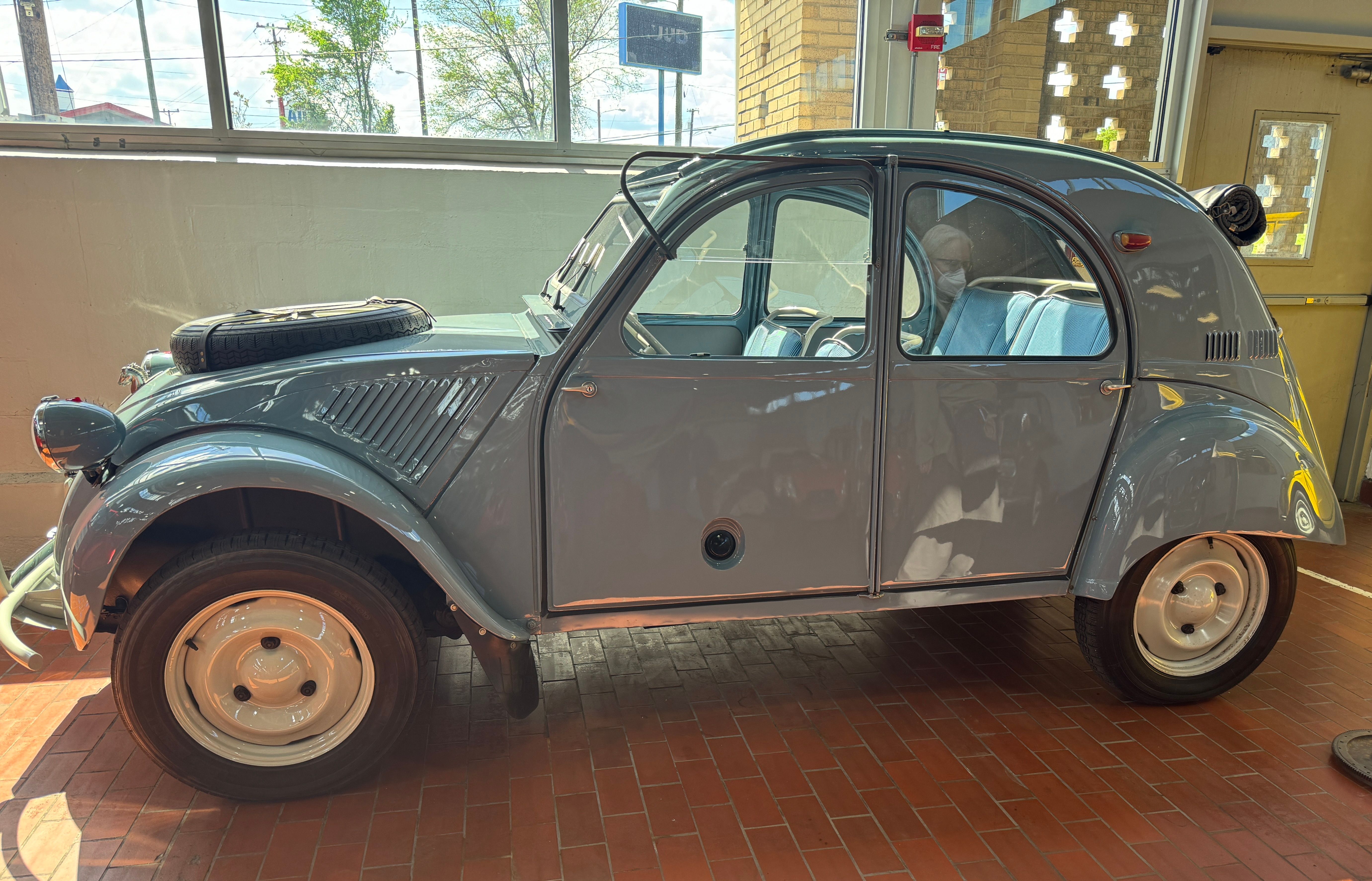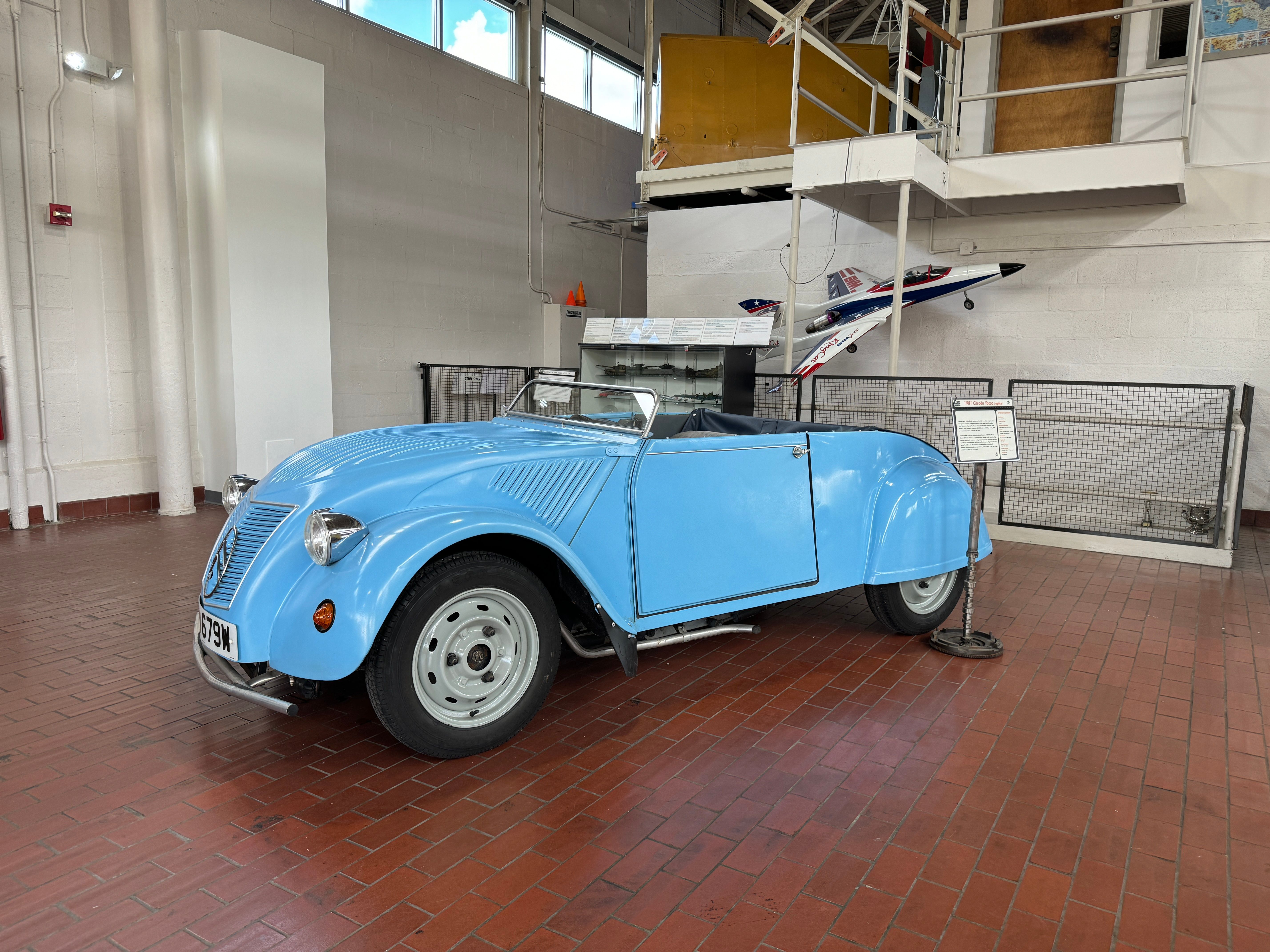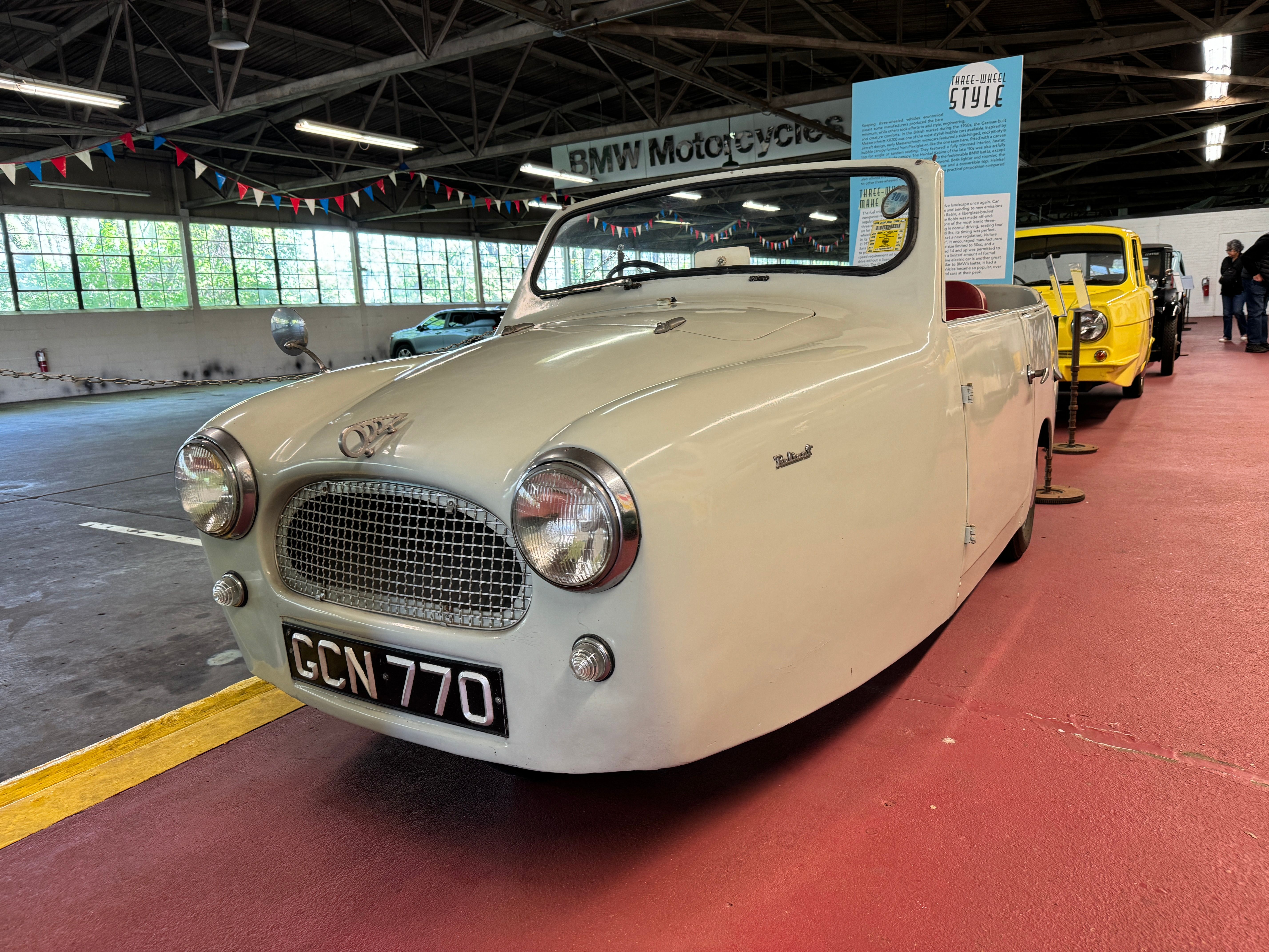 Entering the customer parking (which is free) there is a small exhibit of three-wheelers: