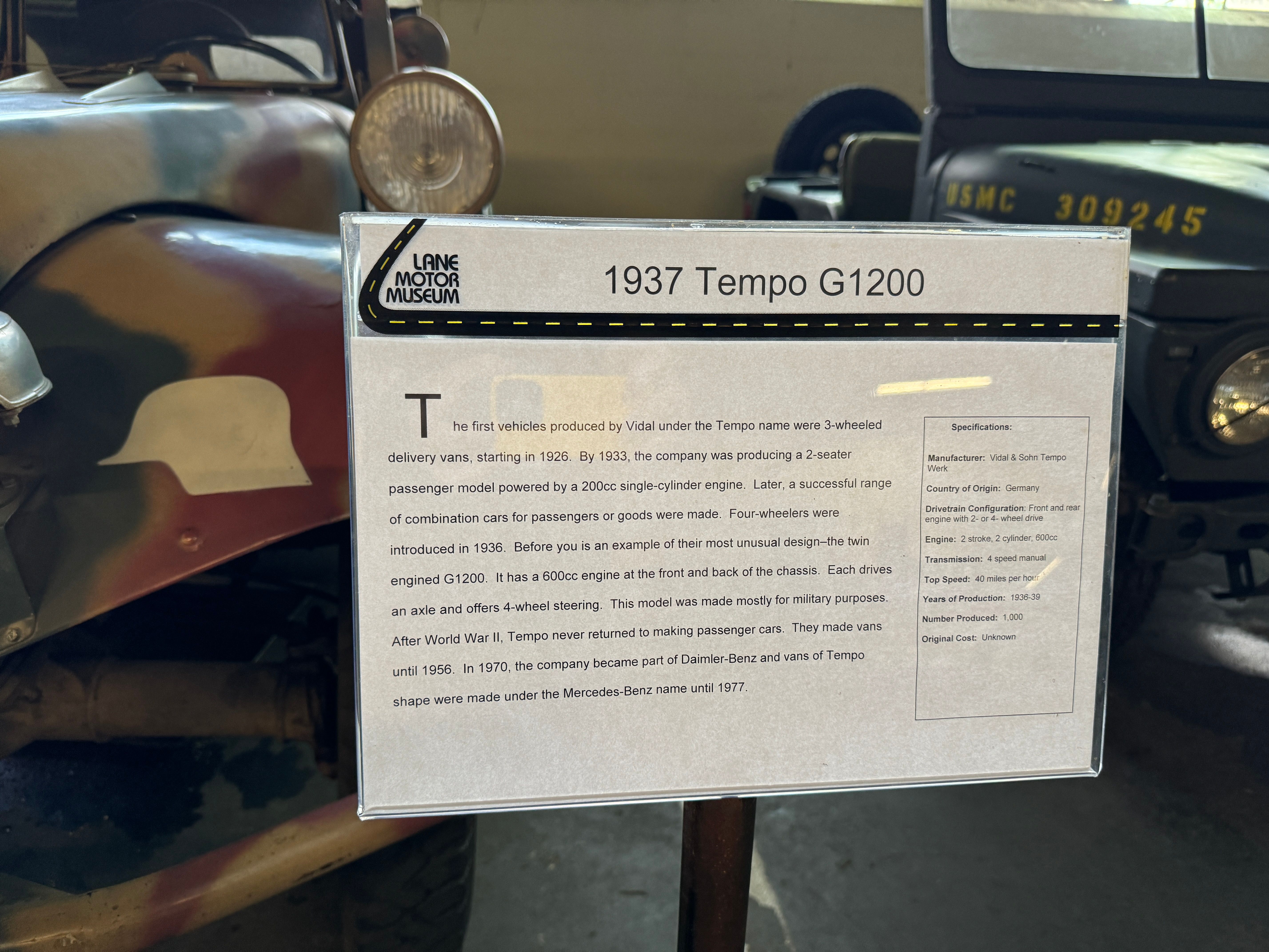 Still in the parking garage, there is a Wehrmacht Tempo in the corner...these were weird and very flexible twin enginged offroaders....
