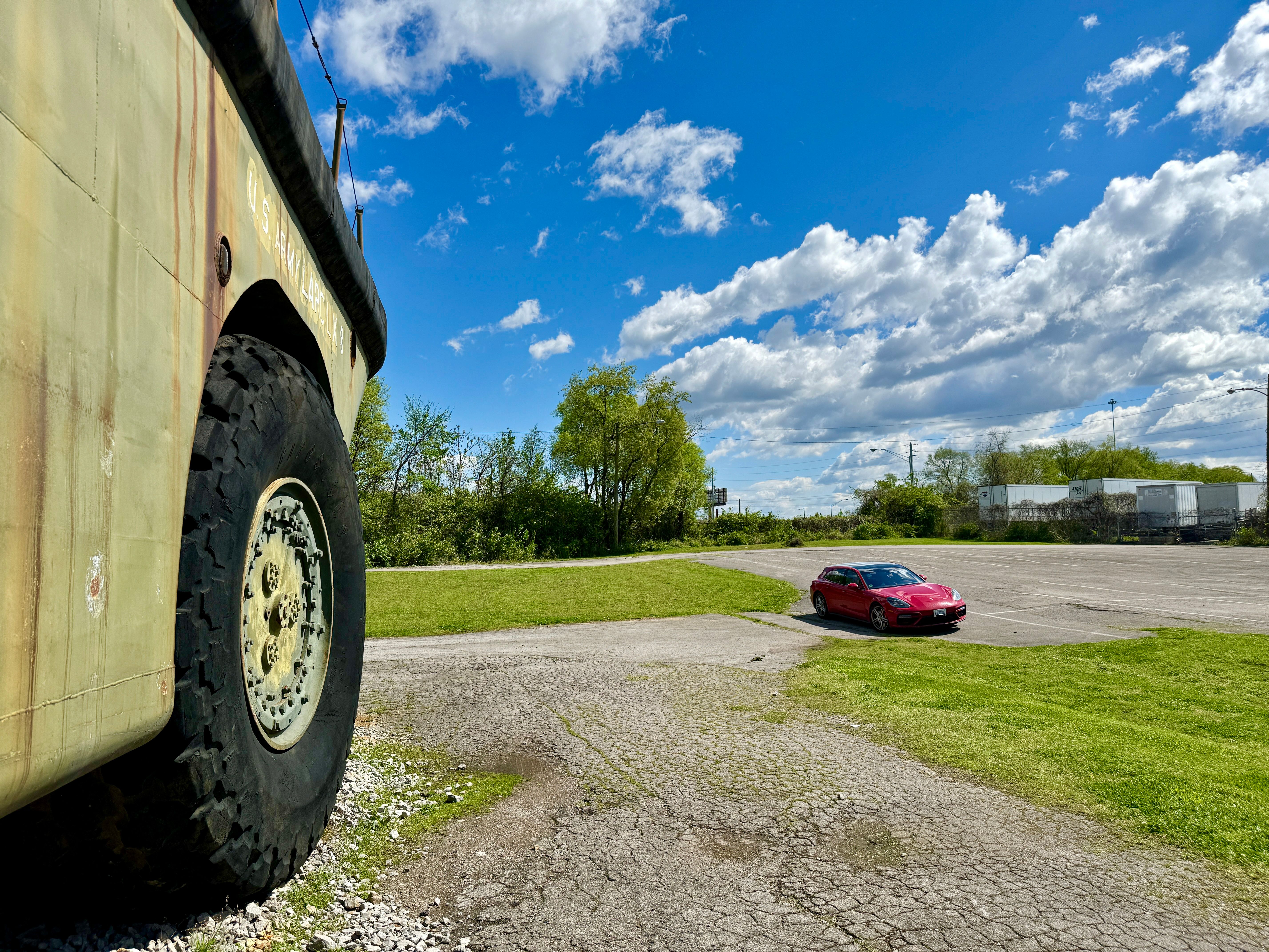. The largest vehicle I have personally is a huge military amphibian called the LARC. The US army used these to move tanks from supply ships onto the shore. It has a V8 engine on each 9ft high wheel. 62 ft long