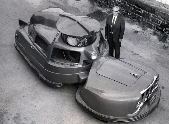 The architect Buckminster Fuller ( who invented there geodesic dome) turns his hand to automotive design and built this monster, the Dymaxion. Three were built, the first of which crashed and killed two of its occupants, the second was scrapped and one original survives. This is an exact replica:
