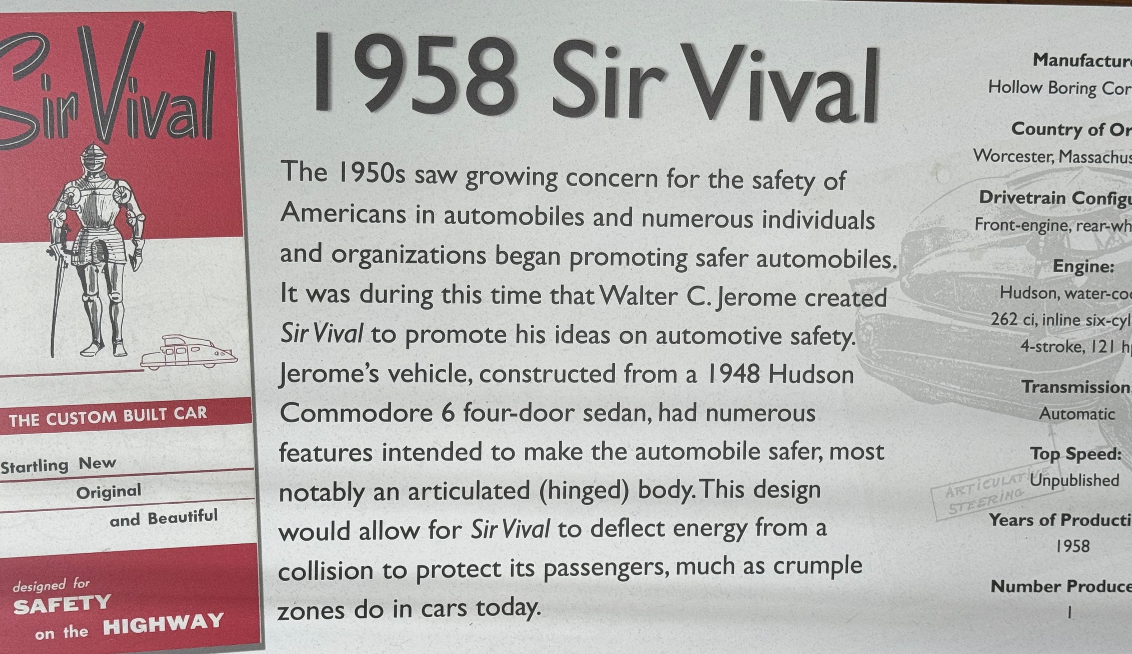 Thus us what remains today of the Sir Vival, which the museum intends to restore to running conditions. Their policy is to preserve as much of the original finish as possible rather than a Concours restoration. I have included a period photo below to give you a sense of this thing...........