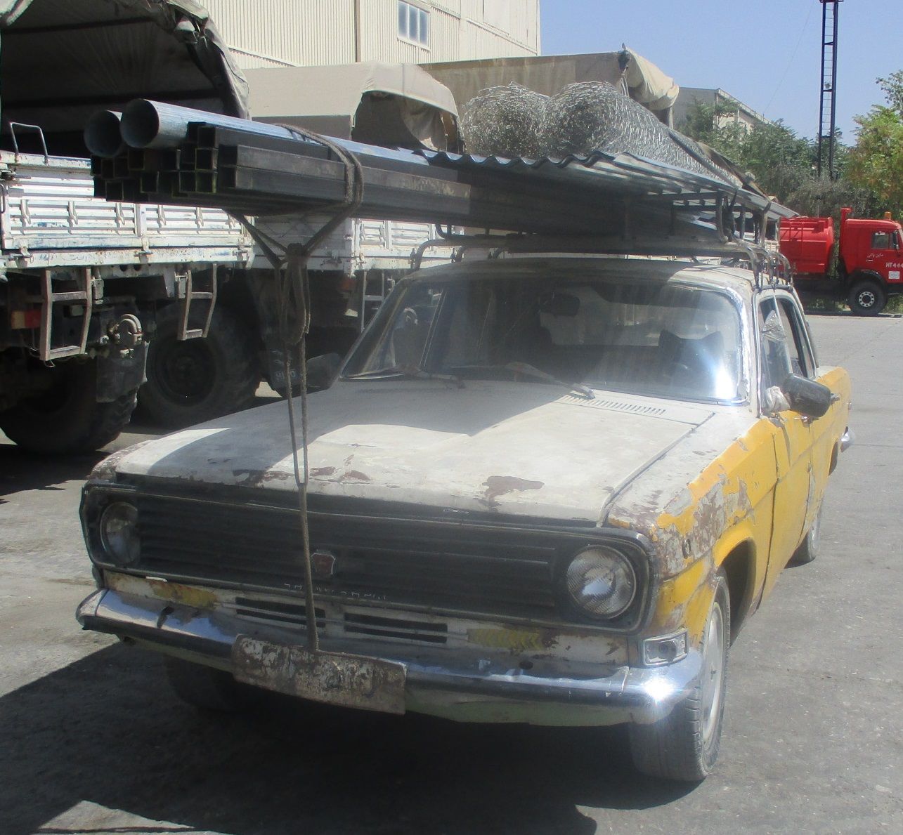 This is a Volga saloon emerging from the winter in western Siberia. You can see dents in the roof where people had inadvertently been walking over it before seven months' worth of snow had started to melt