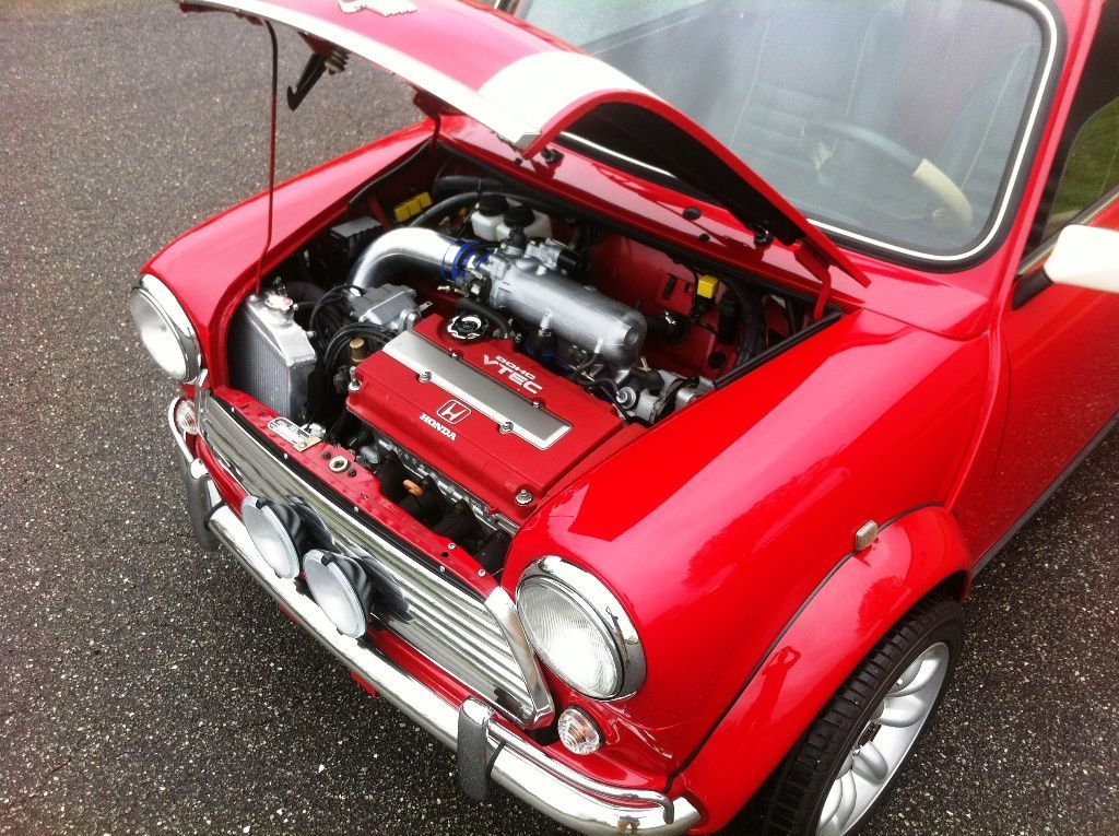 Project Binkie put the entire engine, transmission and suspension of a Toyota Celica GT-4 into a Mini, with the objective of keeping the exterior appearance unchanged. No Carbs sticking out through the grille there!