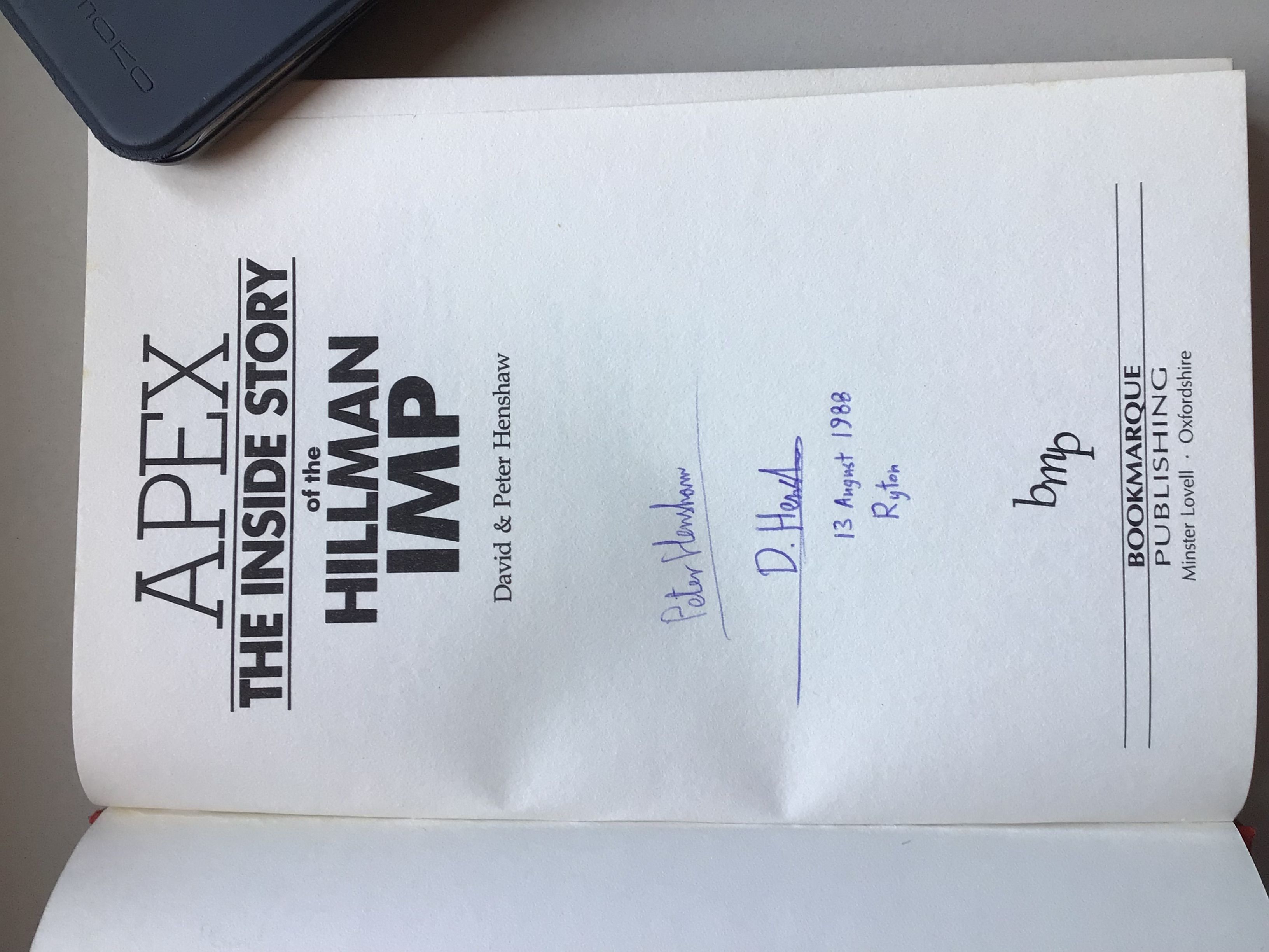 Bought this directly from the authors at the Imp Club National Day 1988 at the Ryton Workers social club. The authors signed it too.Superb book, even if I do say so myself.