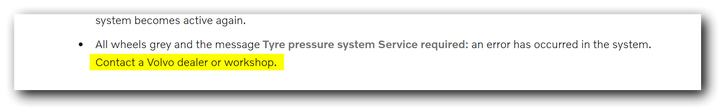 XC60: Tyre pressure system Service required