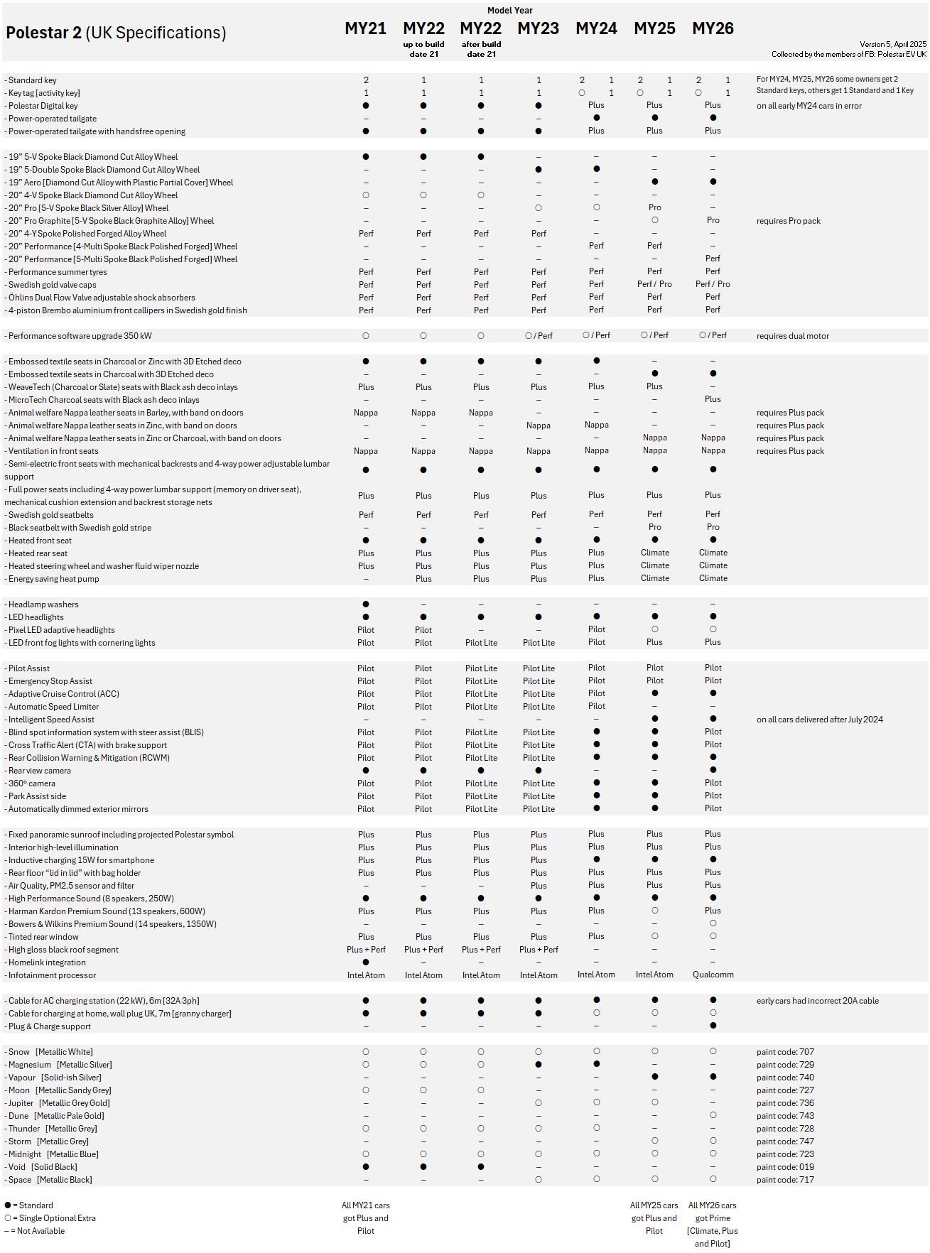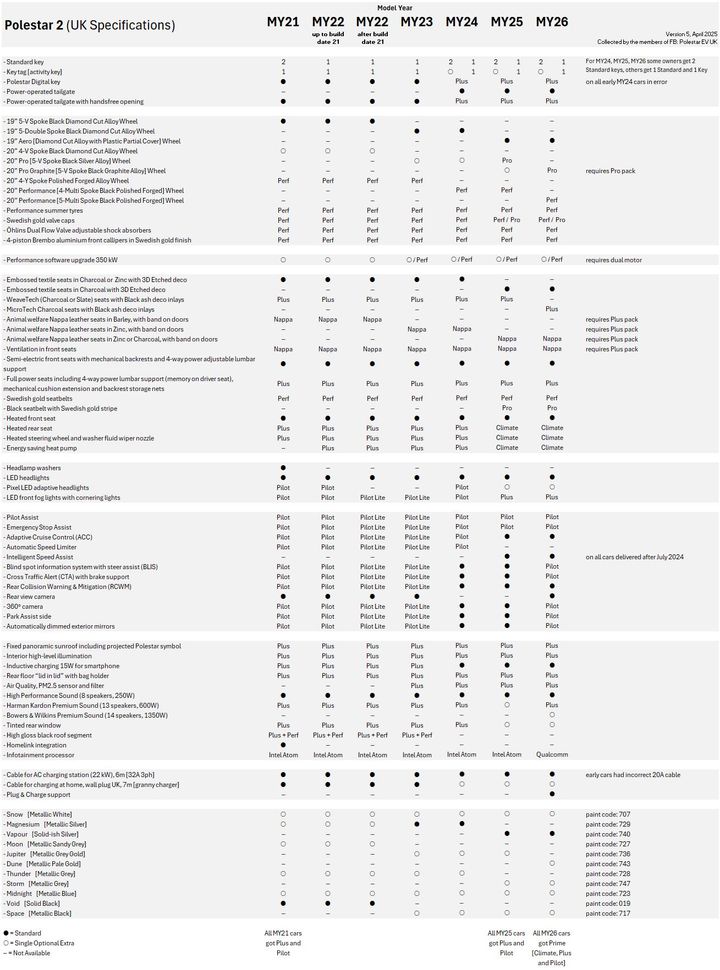 Specs by year (from the owners club on FB):
