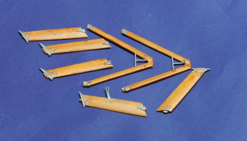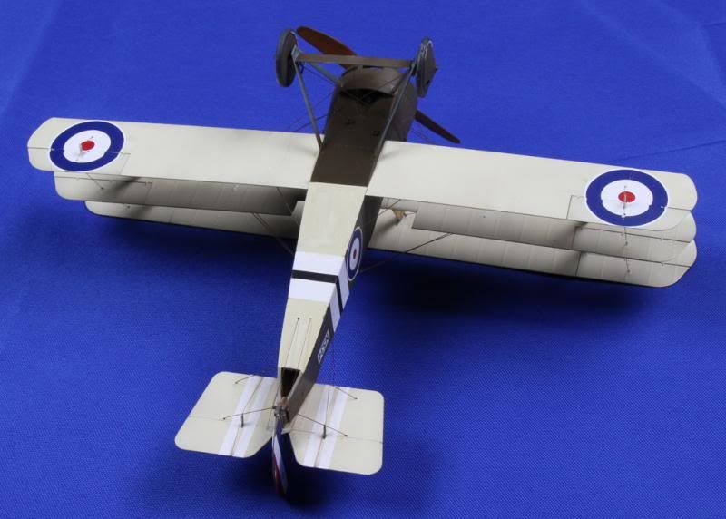 The propeller looks great. I'll try Lifecolour next time then (if there is a next time!). I used Winton oils over Tamiya Deck Tan, and had massive problems with it not drying for weeks. I used 2lb Maxima Chameleon fishing line for the control wires and 4lb for the rigging. Drill holes through all the surfaces where the wires are to go. Using CA, (superglue), glue one end in place, when set pull through and glue the other end whilst having a weight hanging of the end, (I used a pair of reverse action tweezers). When that is set, carefully slice the extra line off flush to the surface, then fill hole with either Mr Dissolved Putty or Tamiya fine putty, rub down and it's ready for touching up with paint.