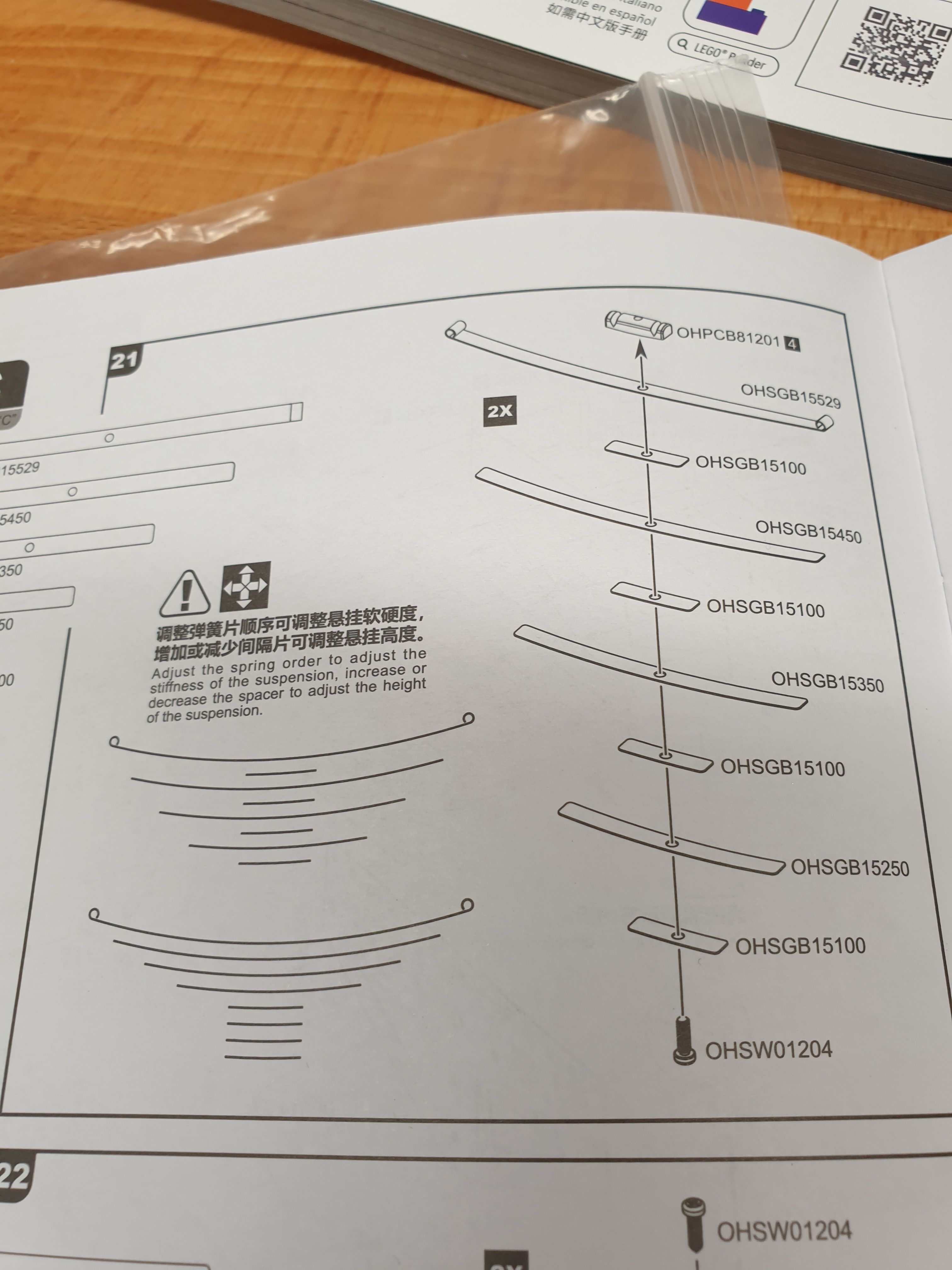 Next these bits get turned into the leaf springs. The instructions show two different ways to assemble them depending on how stiff you want them. I like my suspension plump, not firm, so the bigger leaves have the smaller ones between them (this'll make sense when you see the instructions).