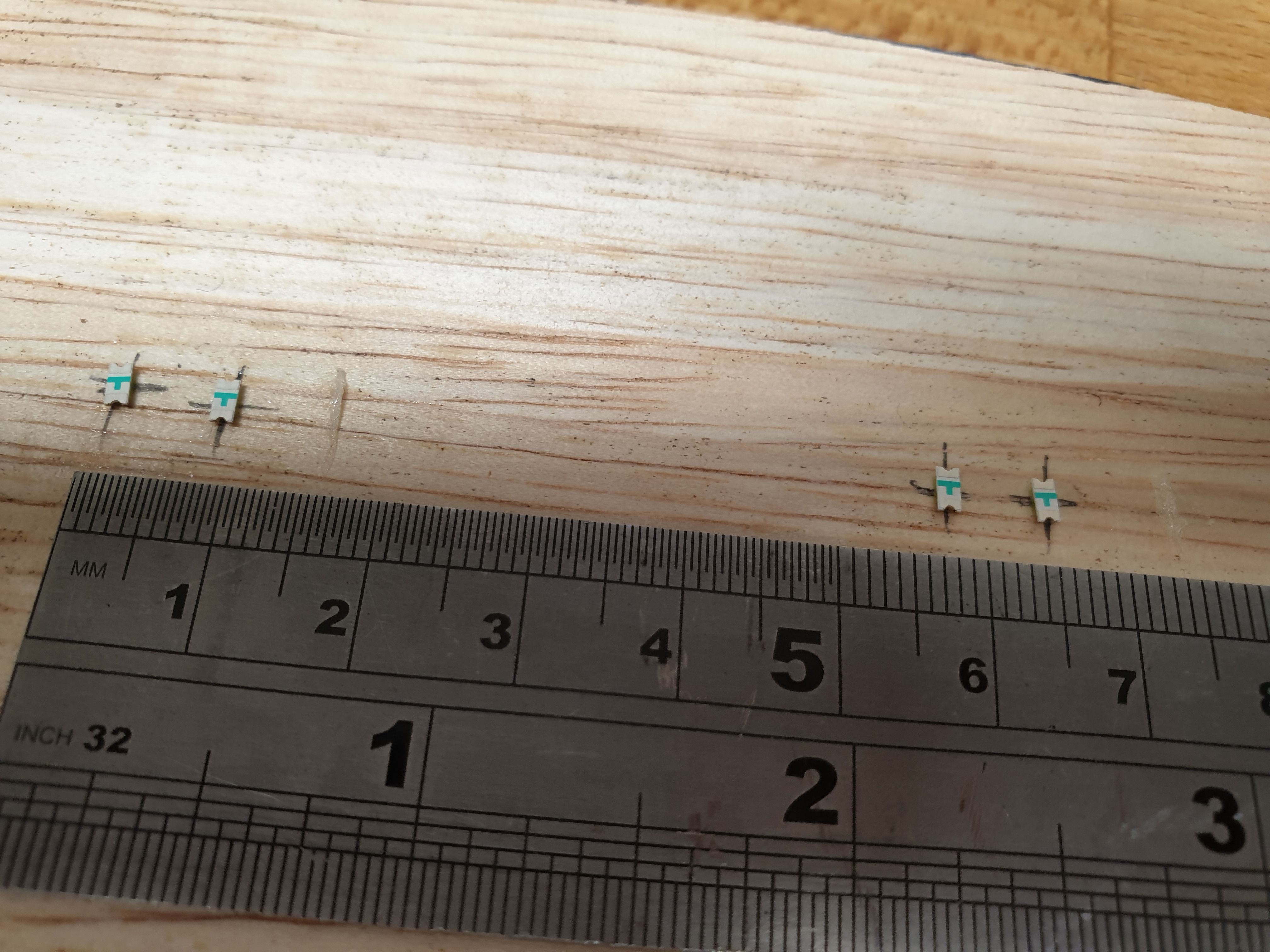 To make it almost doable I've put some double-sided tape on a bit of ply, marked the spacing for the holes the LEDs are going into, and stuck them onto the tape. It'll still be a fiddle but not nearly as hard as trying to do it freehand.