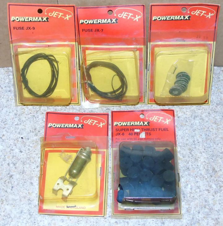 Jetex were basically solid fuel rocket motors. Fuel tablet was placed inside the motor can and a small length of fuse coiled and kept on top of the fuel pellet by a piece of metal gauze. The nozzle was then clipped on, with the tail of the fuse poking trhough the exhaust hole allowing it to be lit when you were ready to launch.