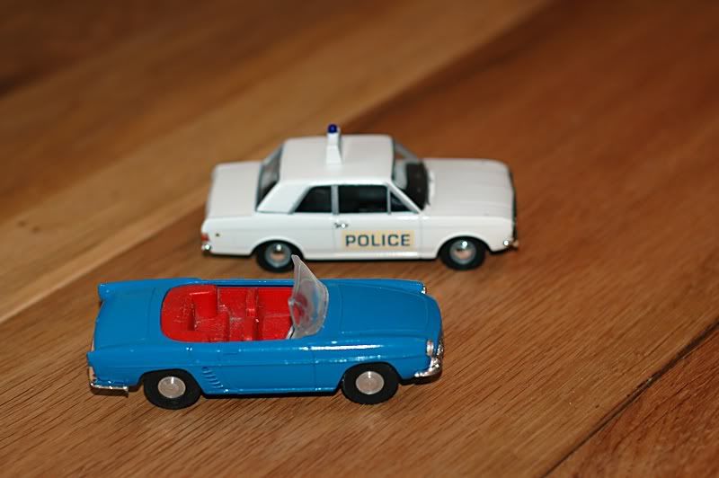 Apart from an "out of my budget" Crossway model I have failed to find an example of this classic 60's sports car, I have however found a reproduction of the Spot-on version. From my childhood memories I thought these models were noticeably larger than Dinky and Corgi but they are described as 1/42 scale so this would make this particular car just over 2mm longer than 1/43.