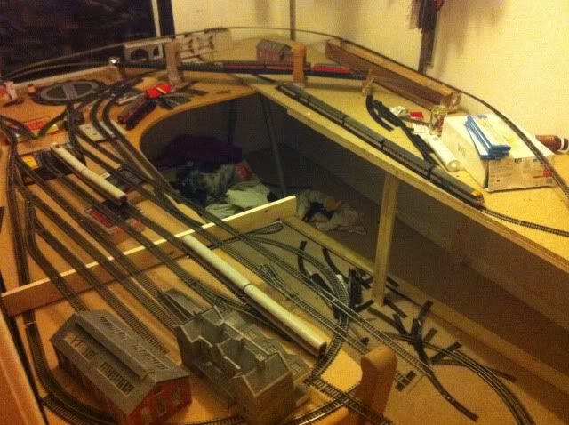 i love how youve got all the trains laid out on the track, even though its nowhere near finshed