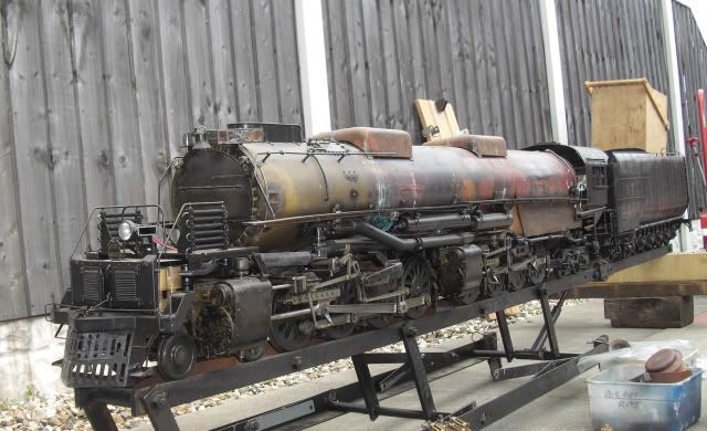 Just thought i'd show this which my late father started building from scratch; mainly from photos and works drawings - it's a live steam 3 1/2" gauge model of a Union Pacific 'Big Boy' 4-8-8-4 which is 3/4 complete. It's about 8ft long with the tender. It's currently up for sale - I have other completed/nearly completed locos such as two Stanier Duchess pacifics (5" and 3 1/2" gauge) and a couple of tank engines, but I have to down size really and finishing this is completely beyond me...