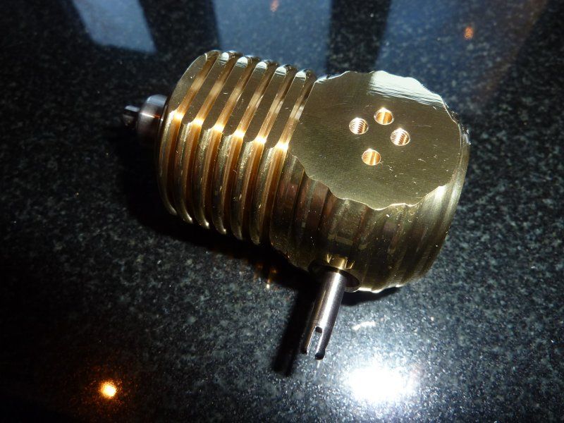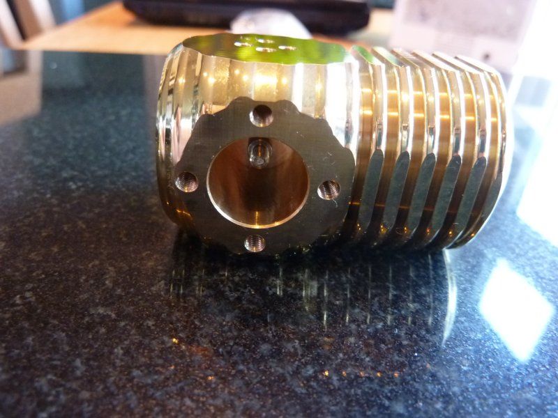 And from the other side, bore for the expansion piston; you can't quite see the samll hole that lets the air up into the top cooling chamber at the far end of the bore. There will be a piston attached to the threaded end of the con-rod: