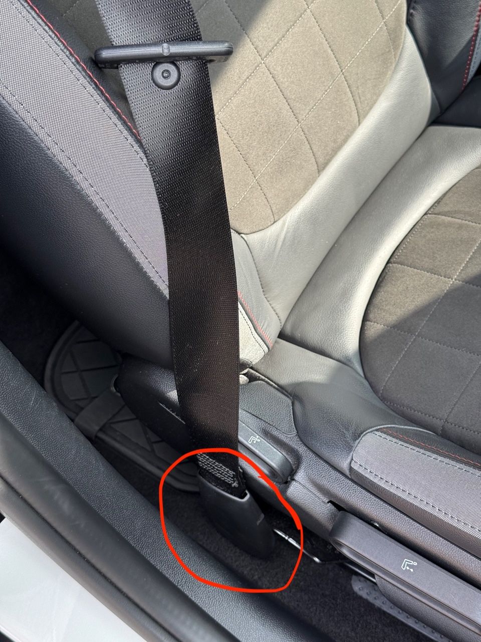 - The lower seatbelt mounting point in my F54 is attached directly to the seat frame, not the chassis. The Recaro seat doesn’t have a mounting provision for this. I’ve attached a photo to show what I mean (see red circle).