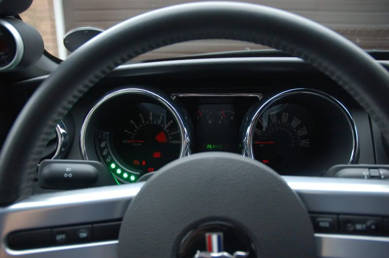 A big selling point for me is the fairly good looks. Most other sequential shift lights are made for motorsport and are rather utilitarian looking. Generally a square black box which isn't going to look too hot on your dash. The curved Shift-i is made mainly for bikes, where it wraps around the tacho, but I thought it would probably fit inside the Mustang tach bezel quite nicely. They also do a straight version which looks pretty good too. There is a template to check fitting here;
