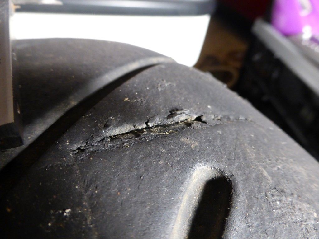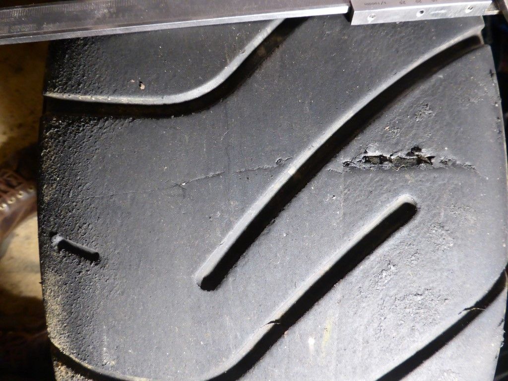 I bought a set late last year, did 15 minutes on them at Blyton and 3x15 minutes at Cadwell with my 130bhp Honda CRX. Recently I tidied up the garage, moved them and noticed this on one of the tyres -