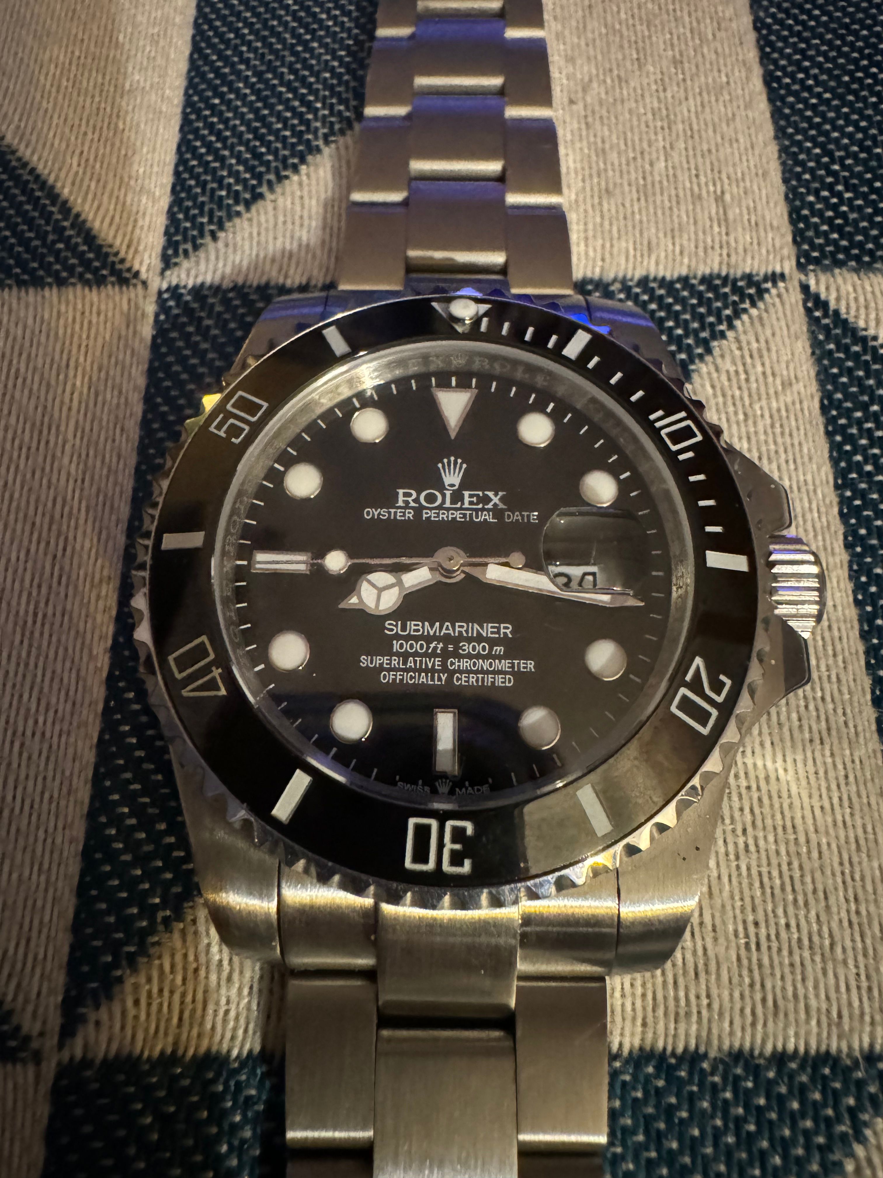 bought a genuine fake - love that term - from Egypt. Rolex submariner 2024. paid £90. got fitted in the shop and a nice fit. but as it was warm wrist was swelled up bit. now back in cold uk and its to big. so needs a link out.