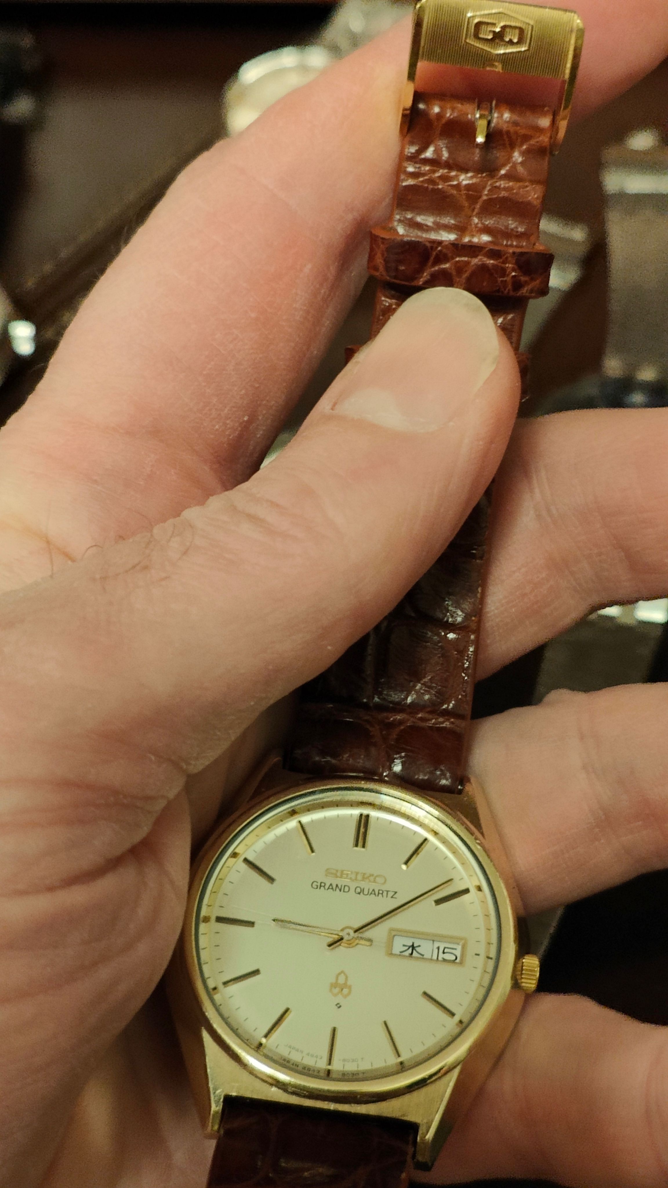 Grand Seiko’s are the premium brand like you said, there’s a whole world of GS watches out there and no there is nothing wrong with 'old' ones - the watches of mine pictured above with the black croc leather and KS buckle are 'only' King Seiko the one on the left is from 1969 and has an incredible 36000 beat movement, the only watch to ever use that from King Seiko - Grand Seiko have many 36000 beat watches there is nothing wrong with old ones - the one on the right is a KS56 with the movement also used on Grand Seiko watches in that period.Can someone advise as I know little about watches. I really like the Grand Seiko and have recently been mulling over the idea of getting one. Is it the same thing, just the 'premium line' as it were? And also, is it acceptable to buy an older second hand watch? Not sure if the difference in price would be worth it. But as I've not worn a watch for many years, I'm a bit worried about spending so much only to find I subsequently never wear it.