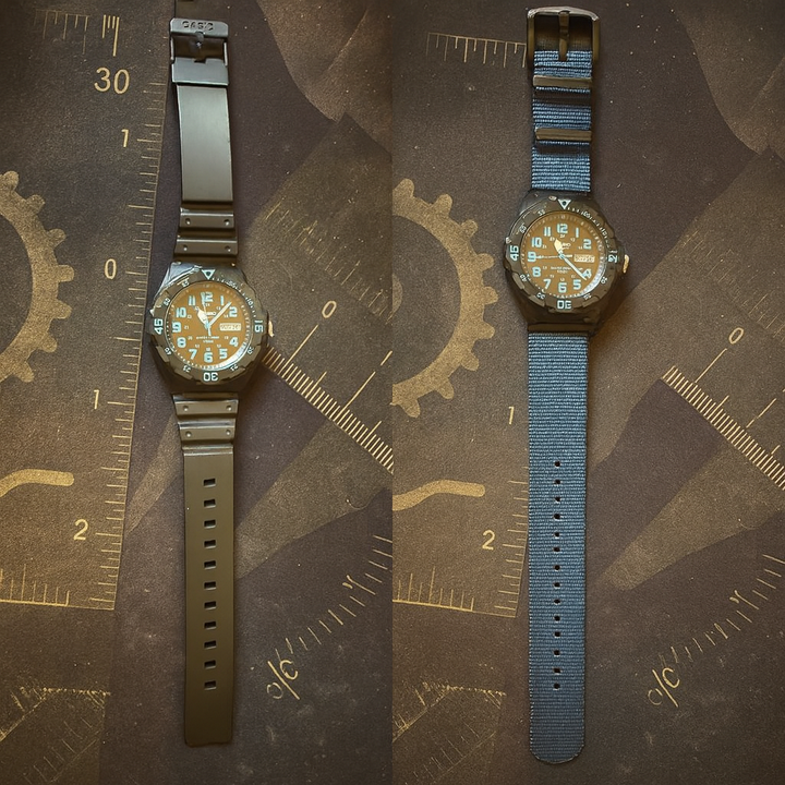 Is this just the standard gold resin case on a Nato? Looks great Also do you by chance remember where the strap is from?