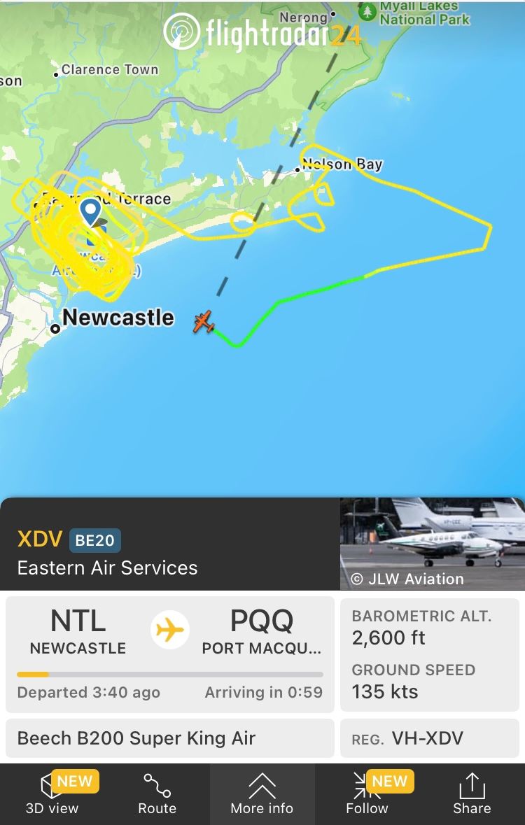 Emergency landing at Newcastle (Aus)