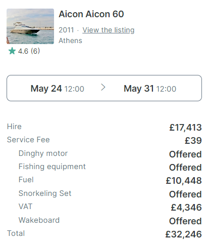 Absolutely baffling trying to work out the costs of getting 8 people in 4 cabin yacht and a pootle about some Greek islands for a week.