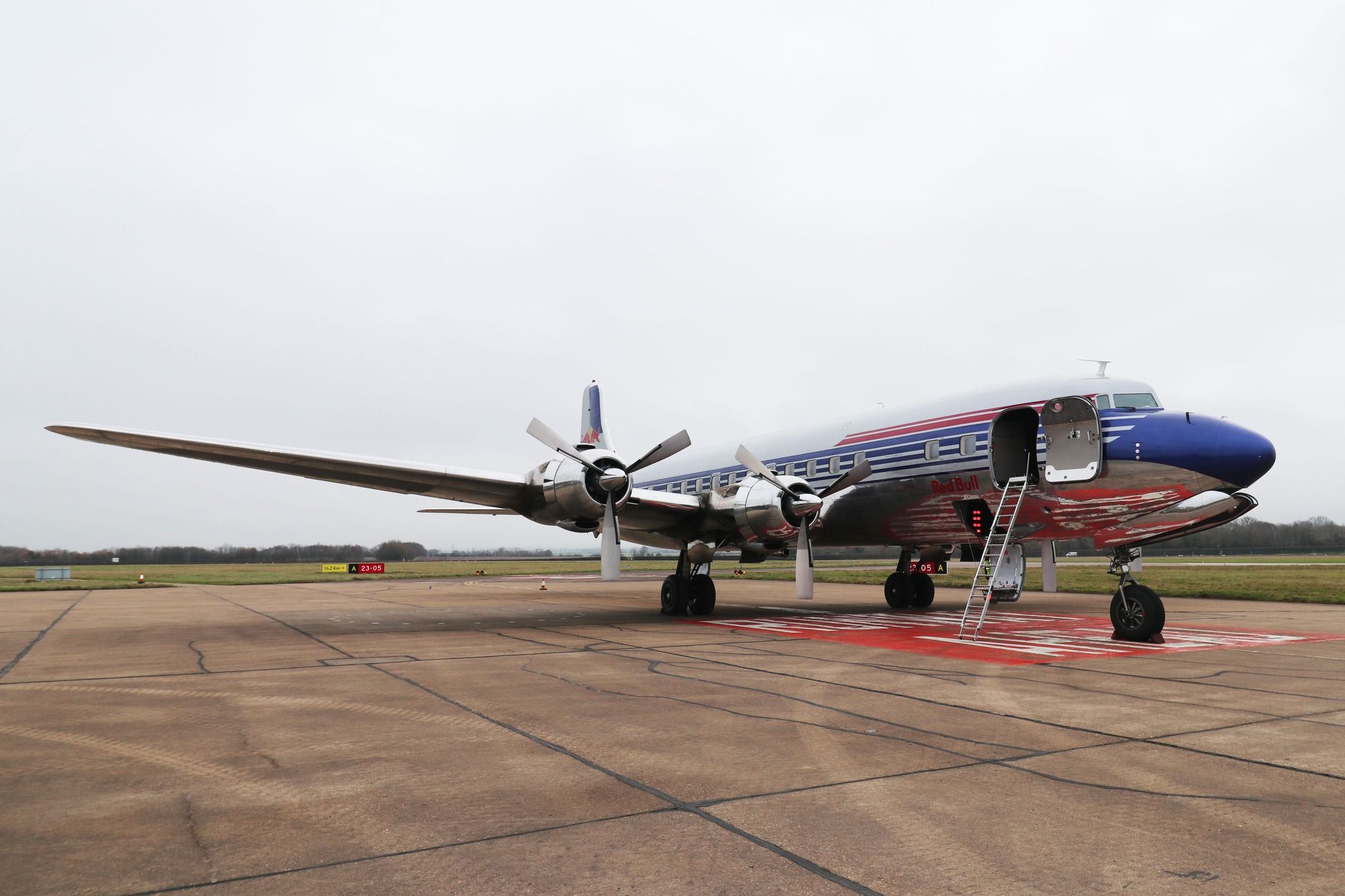Cambridge is not that far from Red Bull Racing at Milton Keynes, so maybe it was here for a related media event for the F1 team, although, Kidlington is maybe a bit closer, but fire cover and support is probably better at Cambridge?Someone was asking about the bar, its not original, the interior is all new, from when Red Bull restored the aircraft 20 odd years ago.