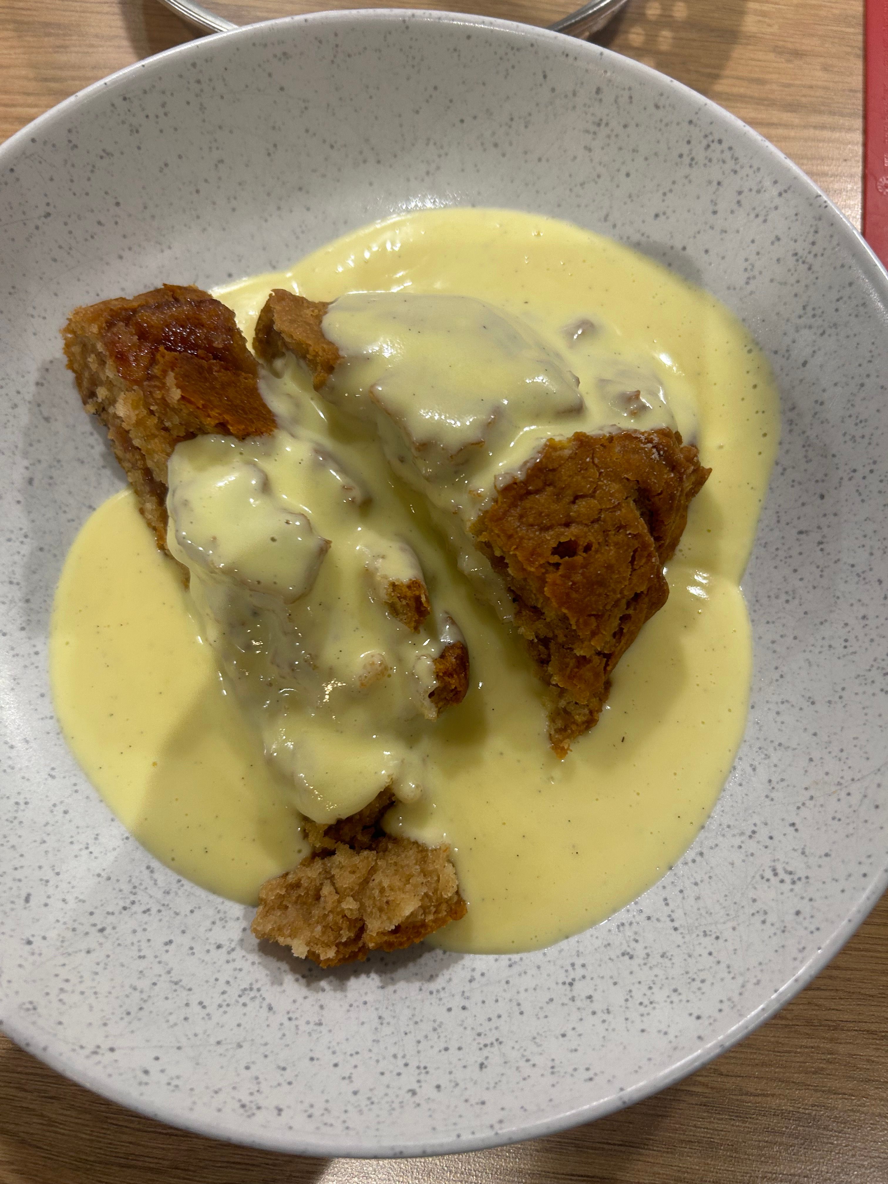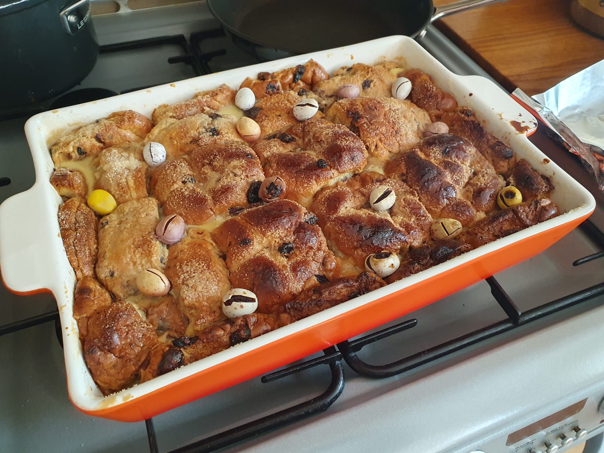 Hot cross bun bread and butter pudding