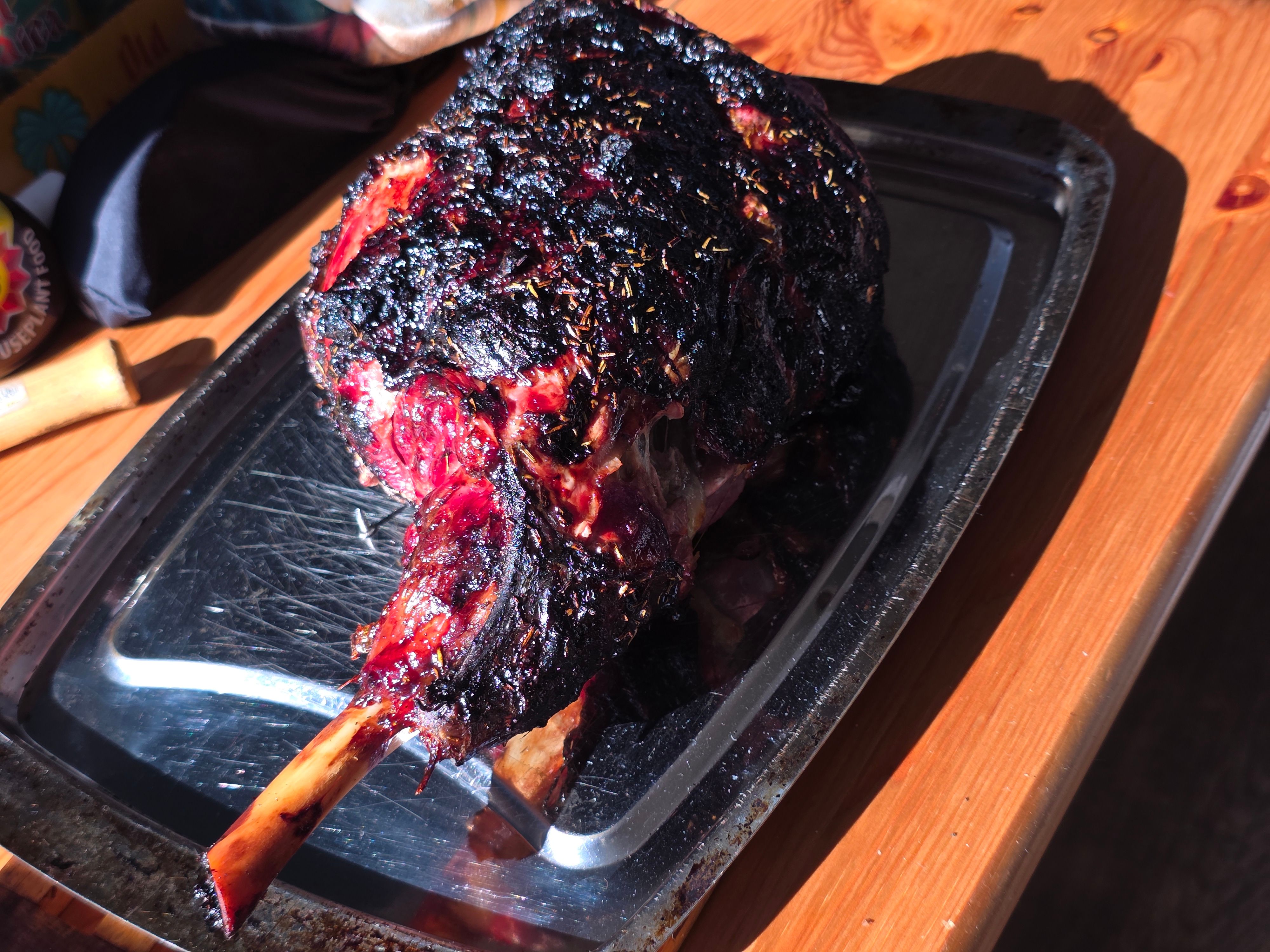 I barbequed a leg of lamb. Studded in garlic and covered in honey and rosemary.