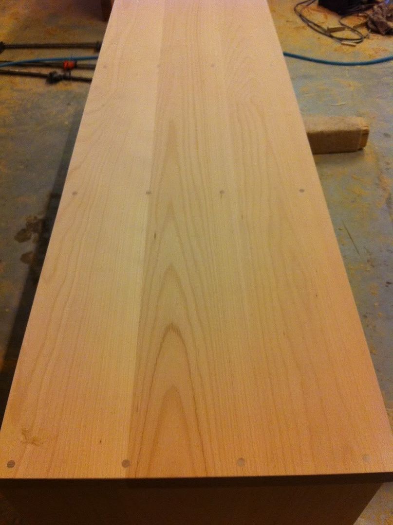 I am more than slightly unhappy about the dowels showing on the top of the unit, the furniture maker said that this is standard practice (and looking on an internet forum that contains pictures of other units this company has built shows dowels visible) and that although the dowels were cut from the same wood that was used to make my unit the reason for them being darker is that I am seeing the end of the grain rather than the side.