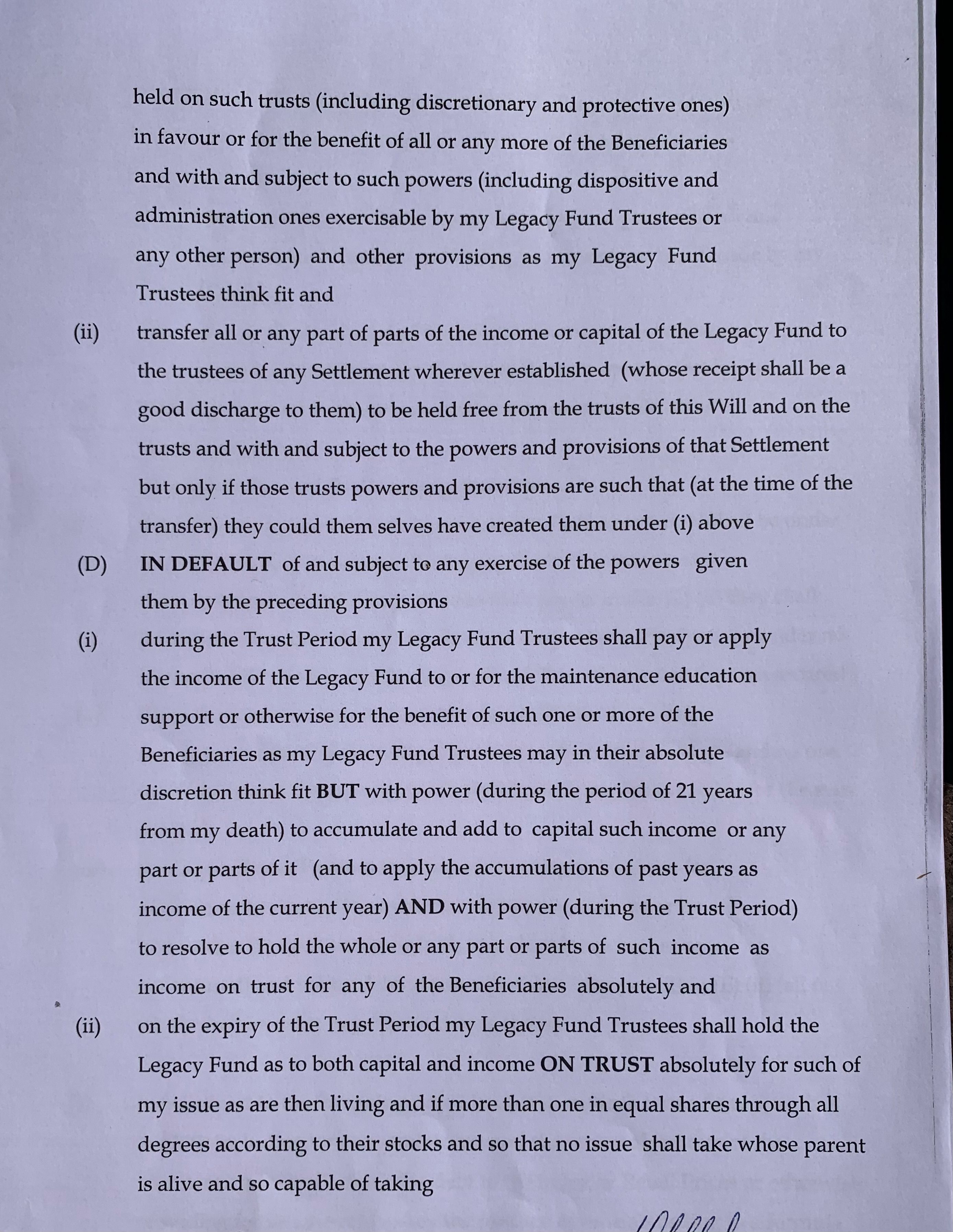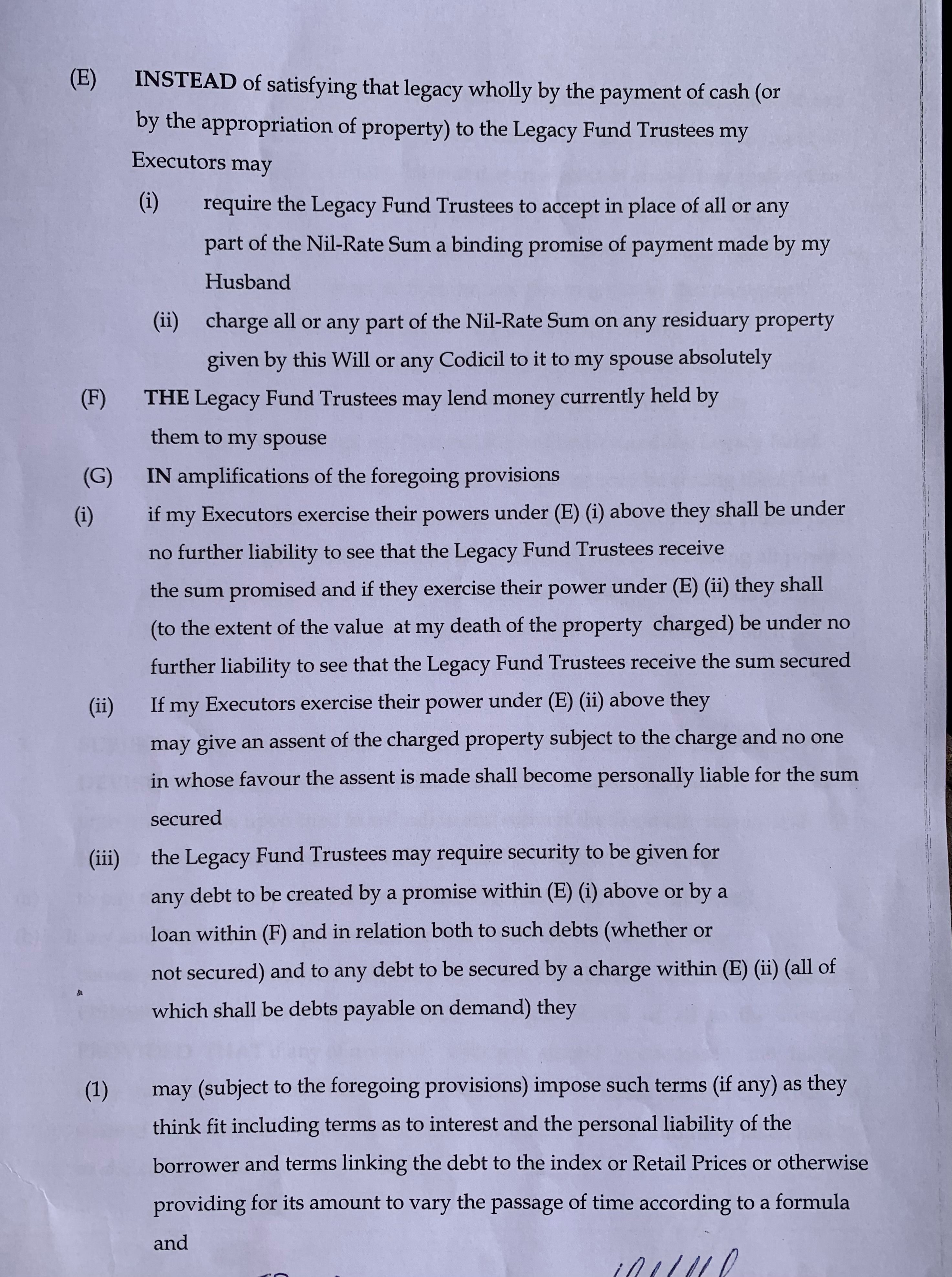 Sorry I missed the middle 2 pages of the will from my post as I’m not sure if these pages are relevent although I’m unsure on the legacy fund section.