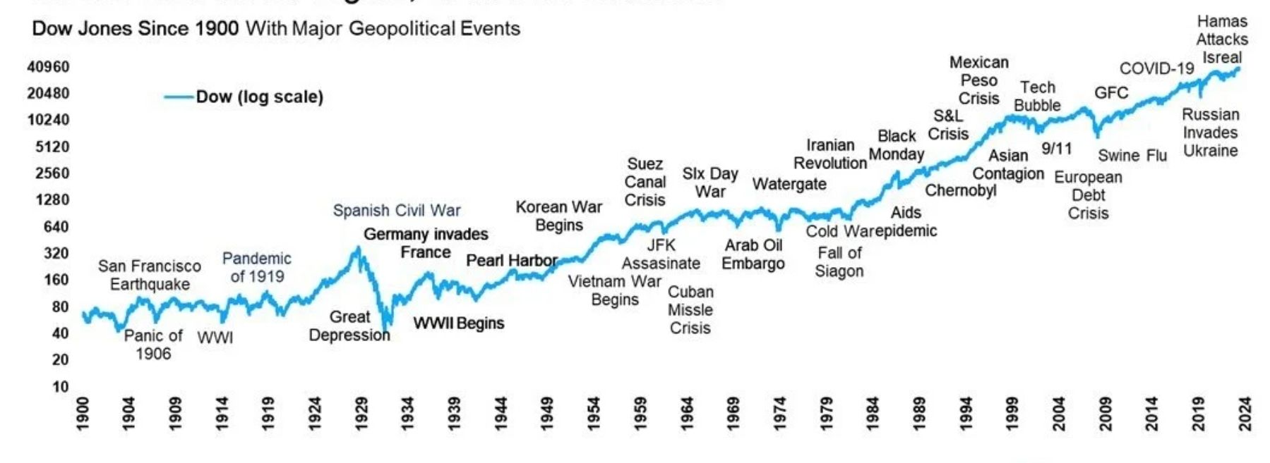Although the 1987 crash was frightening at the time, that crash hardly even shows as a dip, on current long-term charts.