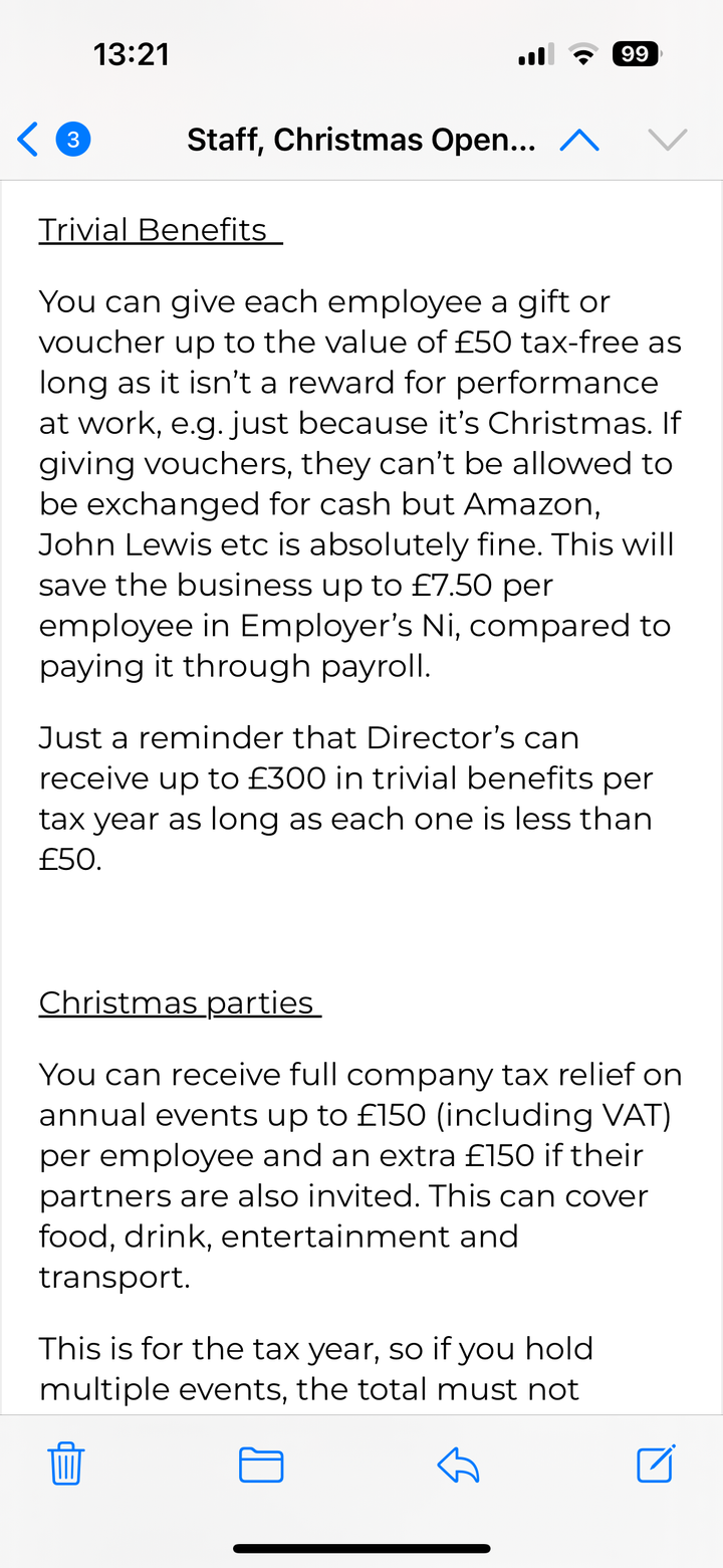 Limited Companies and Trivial Benefits.