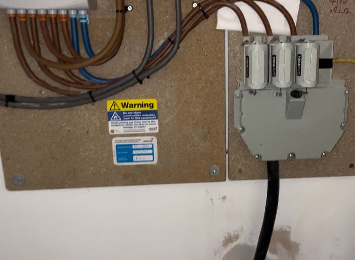 Connection to three phase happened this week…felt like a bit of a circus at times if I am honest. We had UK Power Networks with us on four different days and Scottish Power on another day to connect/install the meter. On one day we had seven people from UKPN on site all in their own vehicles ! Three connection the 3P three disconnecting the single phase and a supervisor!