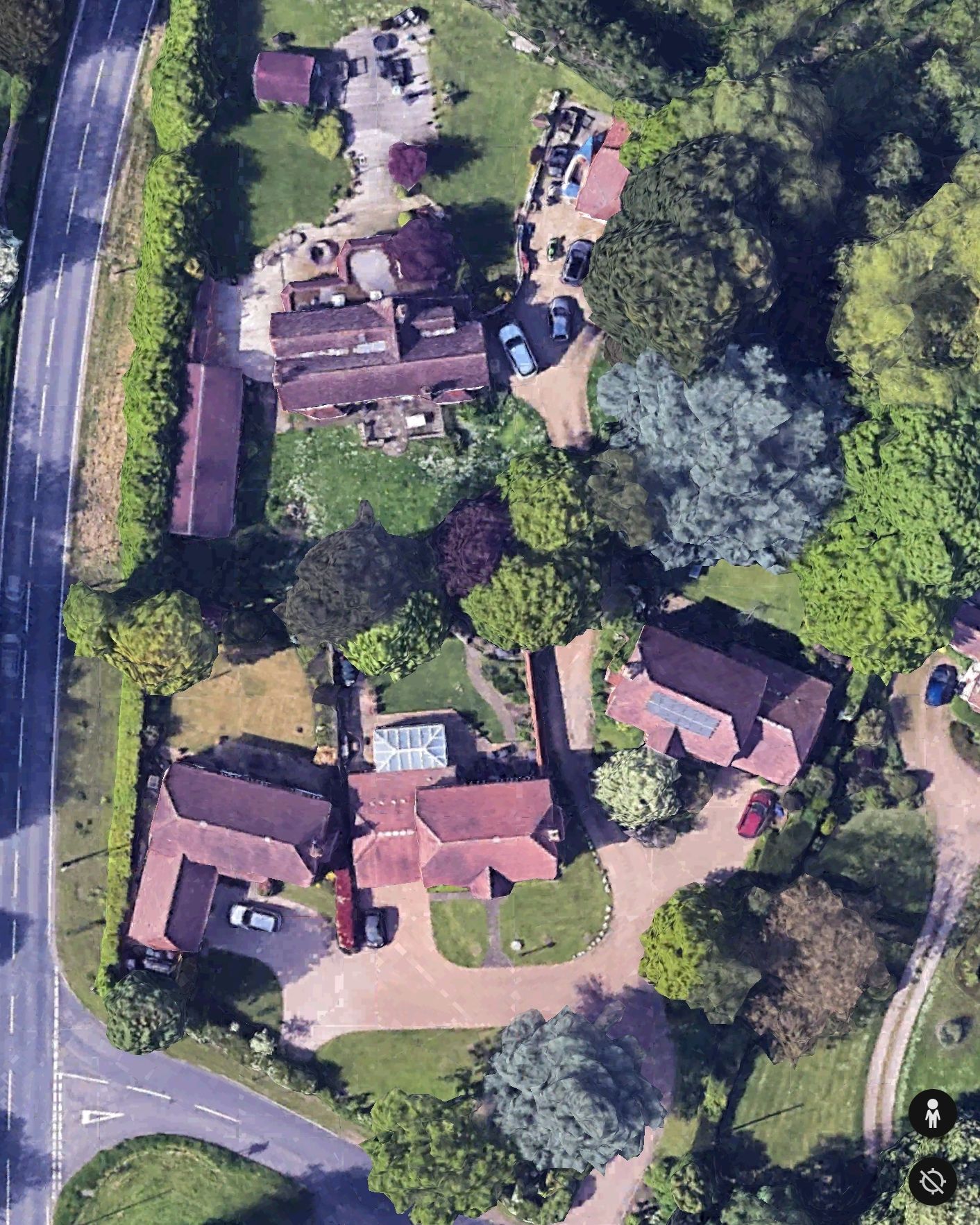 The original house is the one at the top (with various out buildings), with the 3 new houses sitting on what was the orchard.