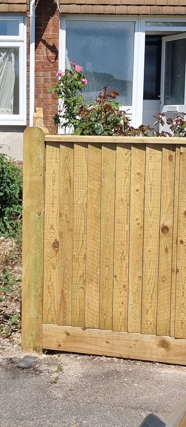 I'm afraid the photo is deceptive, the posts are 6x6 and are concreted in on my side of the boundary line.