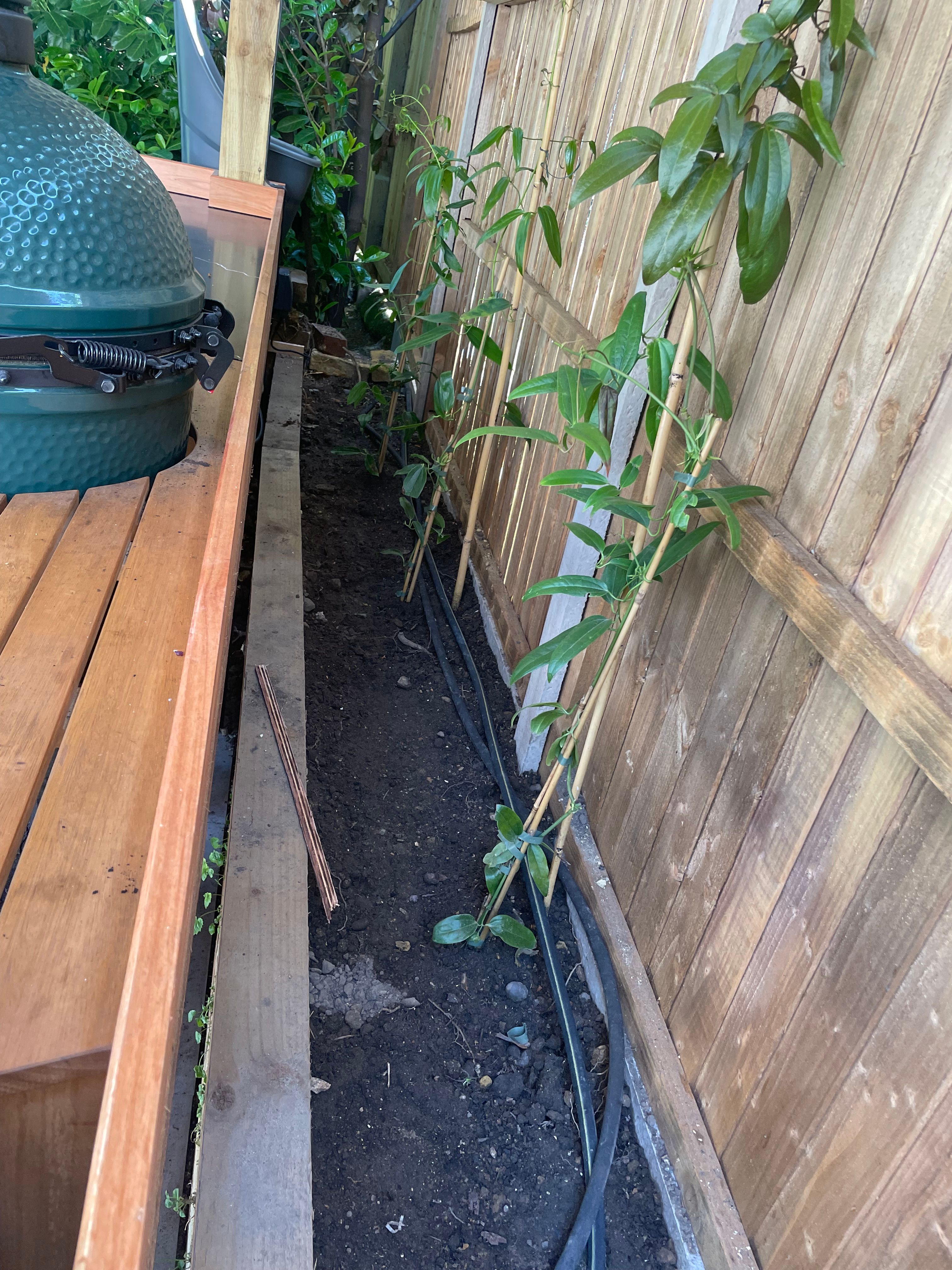 I've planted Clematis here, but I have a feeling the earth/mud/whatever I've used to create the bed isn't exactly the best. It's what we left over from the patio overhaul.