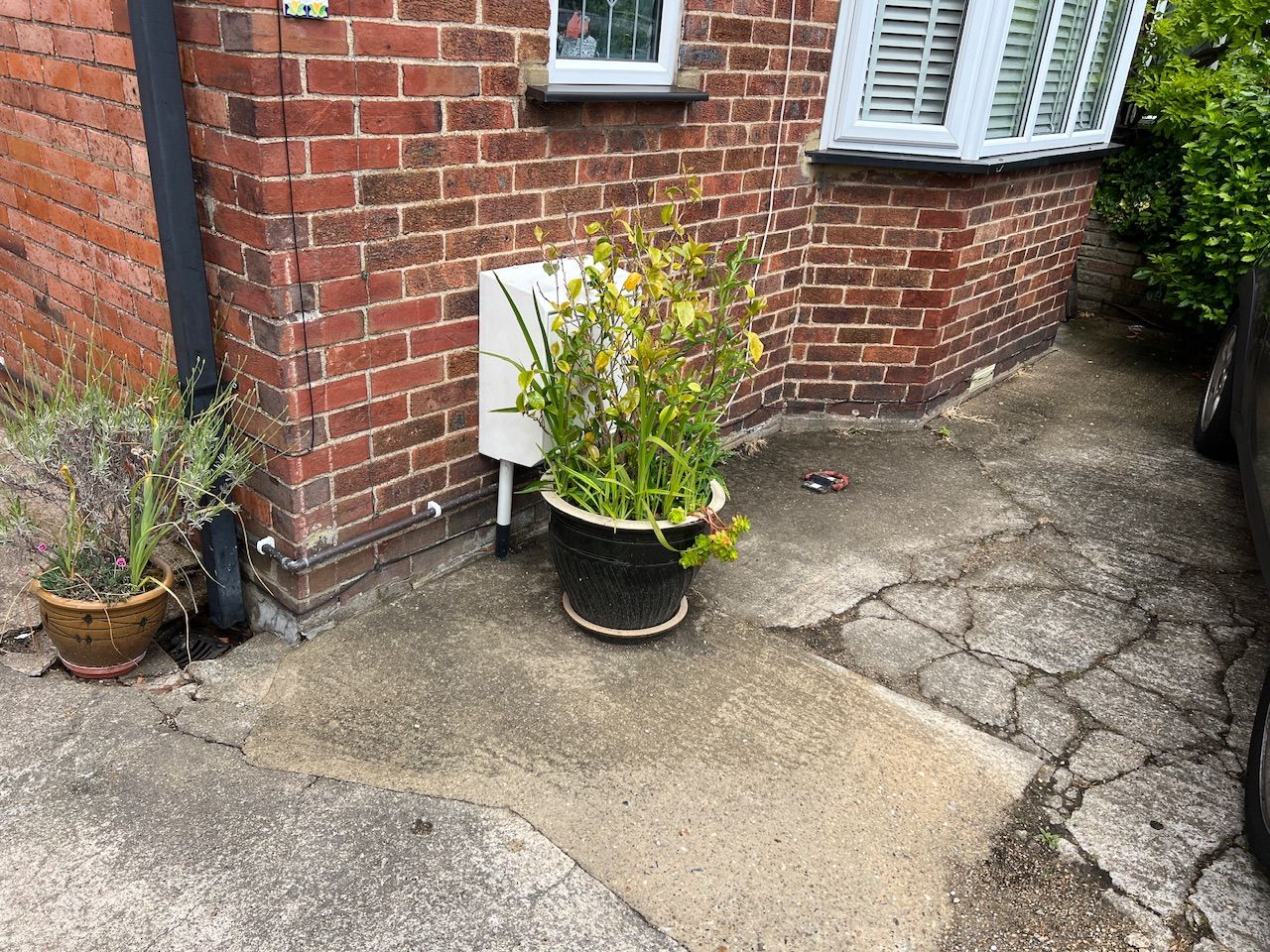 Front room has always got hints of damp inside facing wall, in the corner. Nothing bad and I kind of think it’s airflow. Anyway the missus is convinced it’s water that lays outside on driveway when it rains (drive tips towards the house)