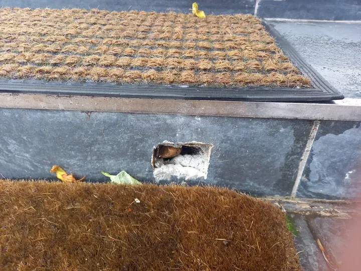 More seriously - is that a piece of (damaged) copper pipe visible in that hole? If so, why is it there and what is it doing?