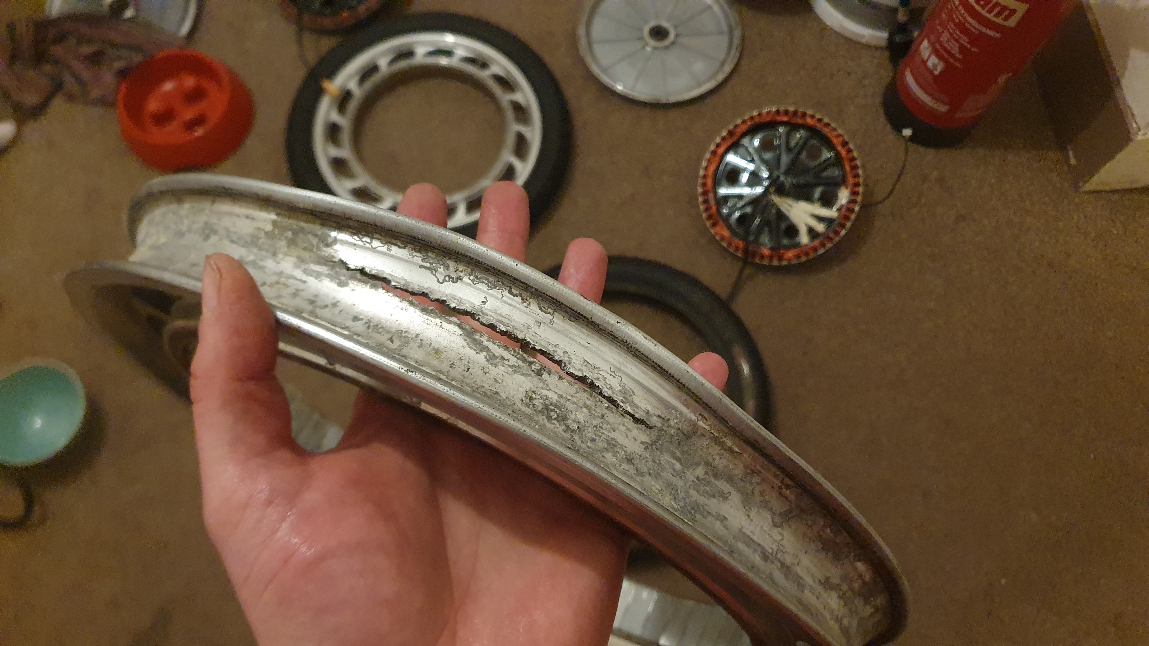 My advice, either buy another unit to cannibalise for parts or buy a new wheel, it's not a nice quality thing, it's really cheap extruded type alloy, like old window frames (and Elise chassis 😂) it's also quite badly corroded, and bent. It's repairable but you will have a job finding someone who will,they won't be very happy about doing it (if they aren't a cowboy) and I suspect it will just crack elsewhere. I also don't reckon anyone's repairing that for less than a new wheel will cost, full machines aren't that expensive, suspect a used one would be fairly cheap.