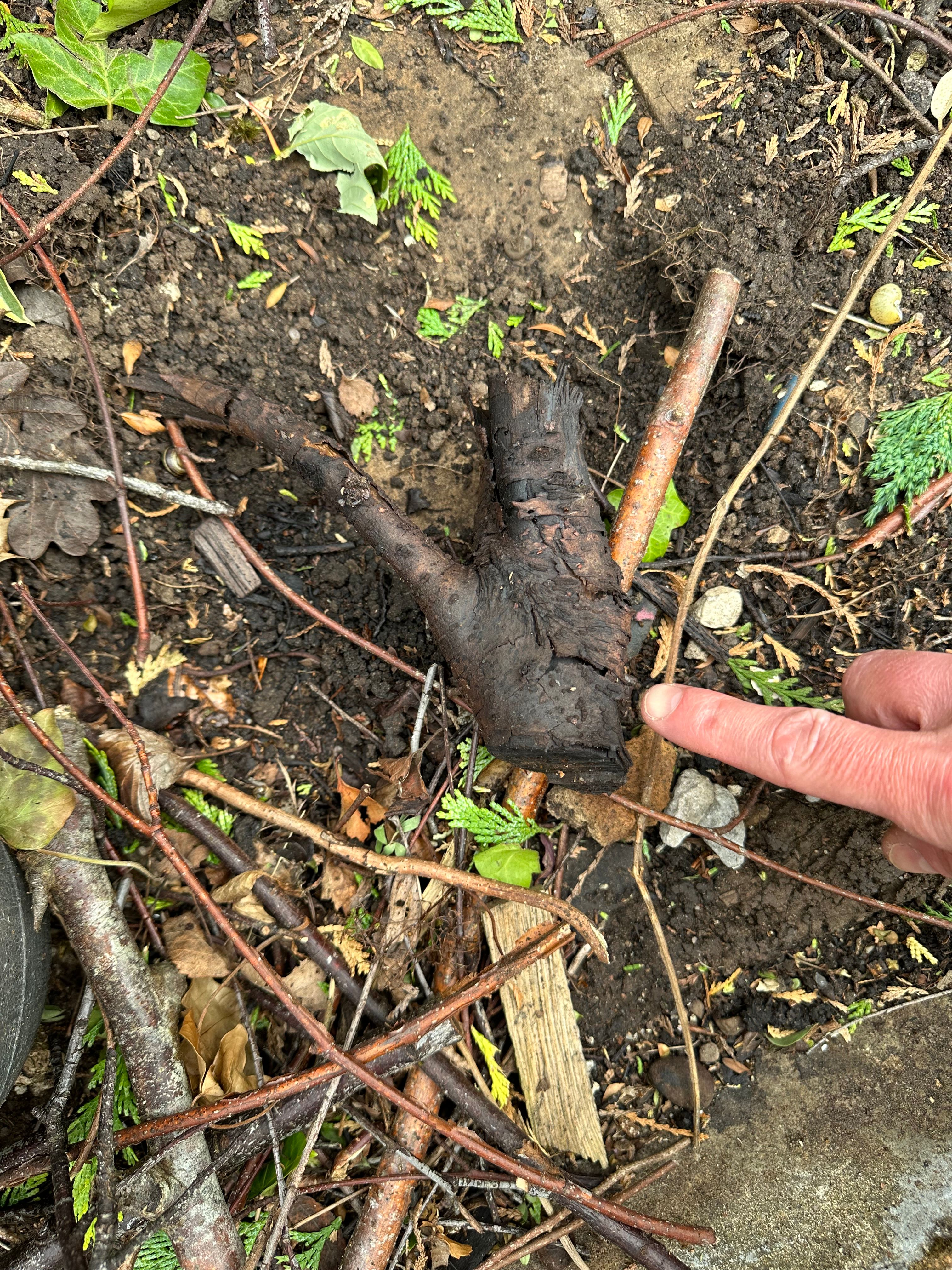 This is where cone was, also that brick (which reeks), and this bit of wood smells a bit of it too.
