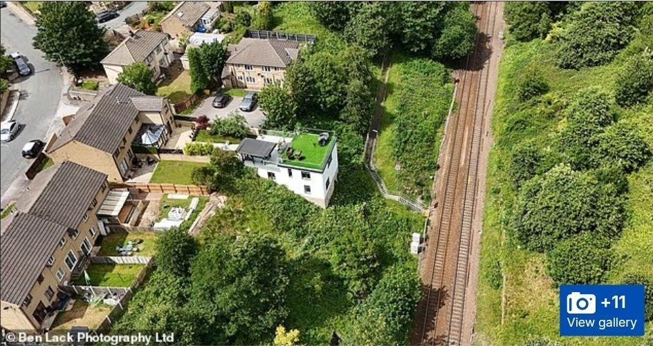 It's on a railway embankment - 'you can only see it from the trains'.Looking at the location & adjacent gardens you'd start to wonder if it's even inside the boundary.